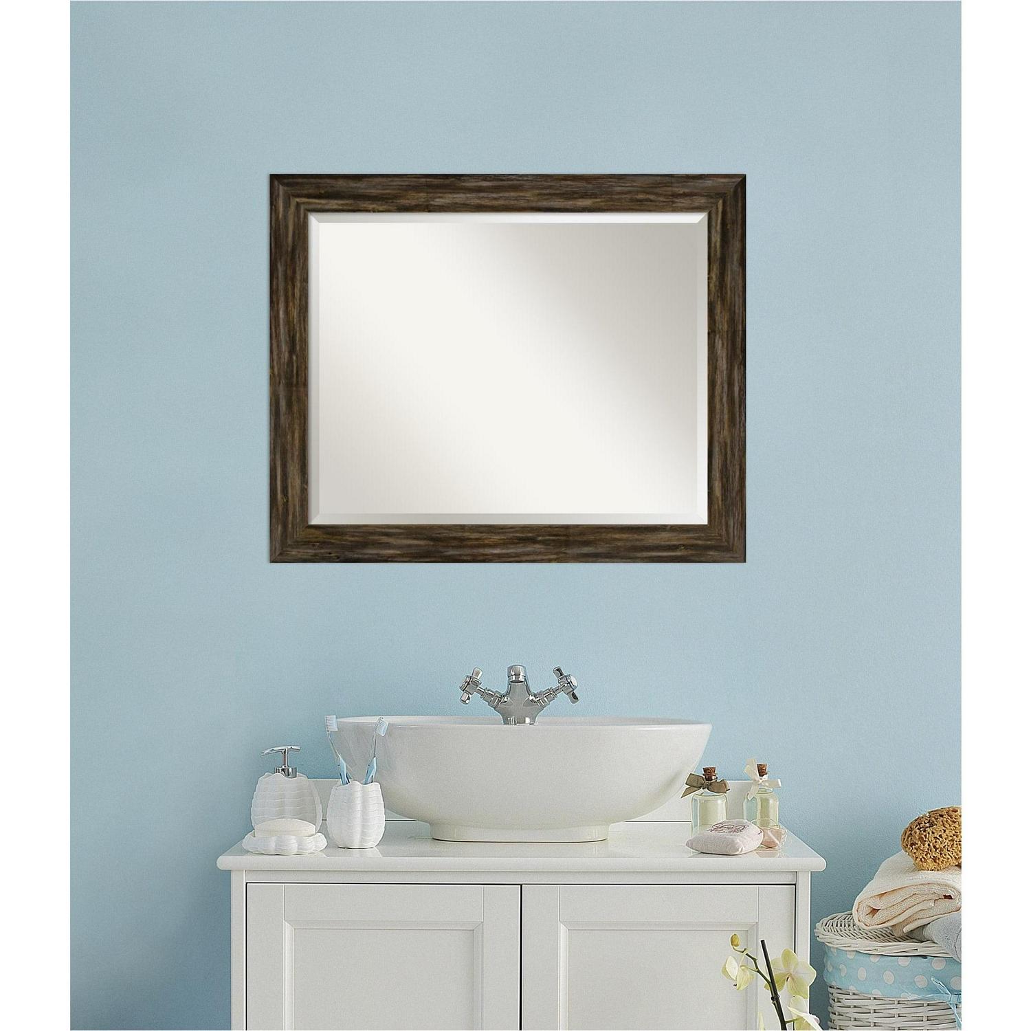 Give your bathroom the finishing touch with this 100% real wood Beveled Wall Mirror framed with the Fencepost Brown Narrow frame. Individually made using traditional custom framing techniques, it has the quality you would expect from your local frame shop. It holds its value with premium finishing that can be appreciated up close.