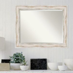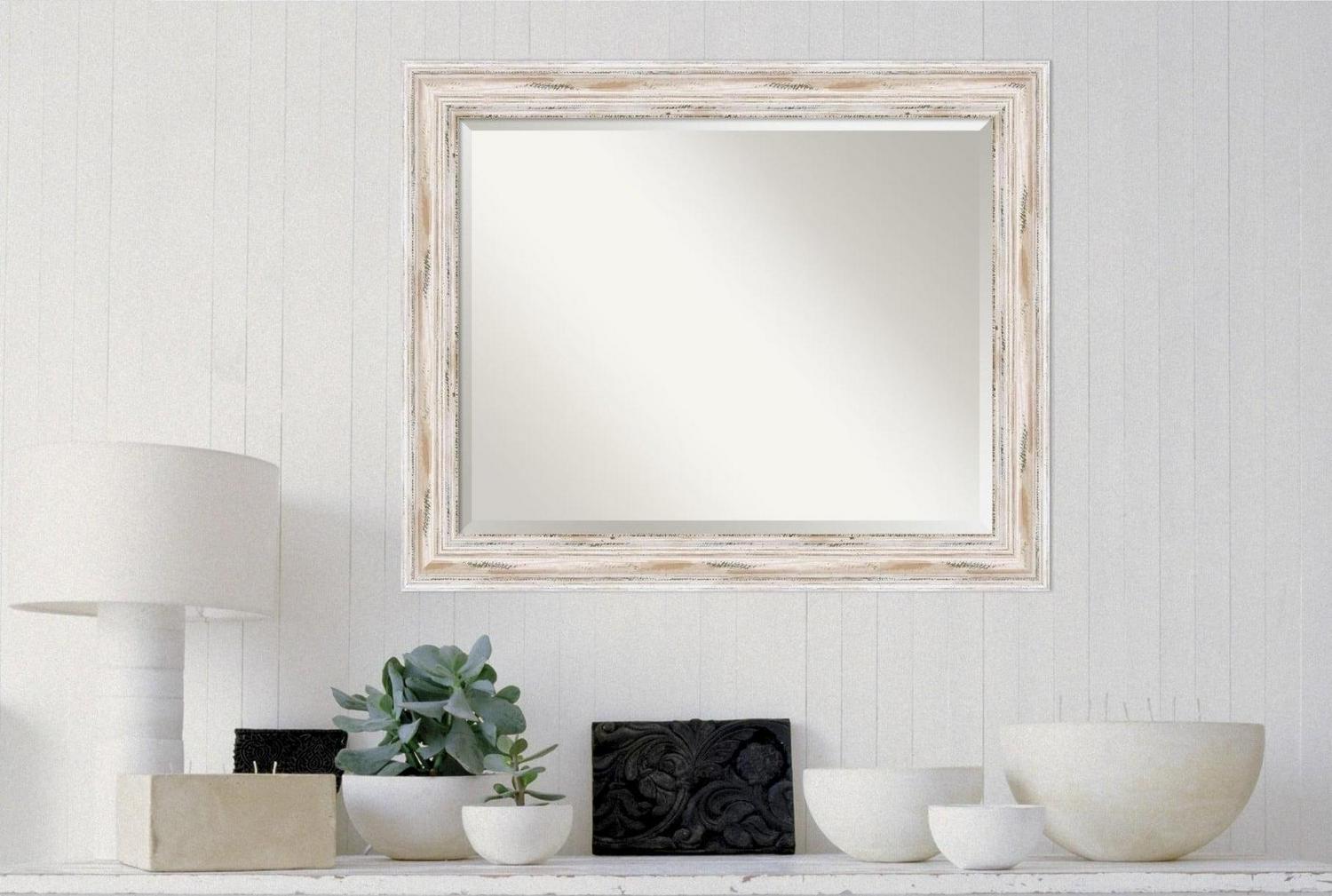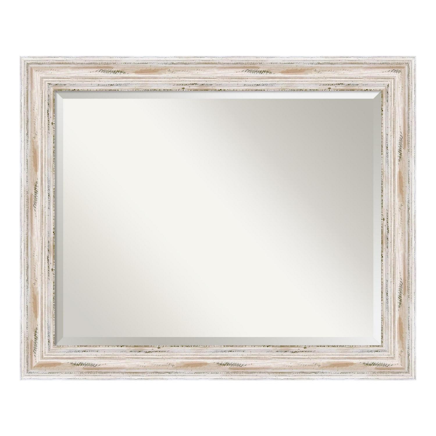 Give your home or office the finishing touch with this 100% real wood Beveled Wall Mirror framed with the Alexandria White Wash frame. Individually made using traditional custom framing techniques, it has the quality you would expect from your local frame shop. It holds its value with premium finishing that can be appreciated up close.