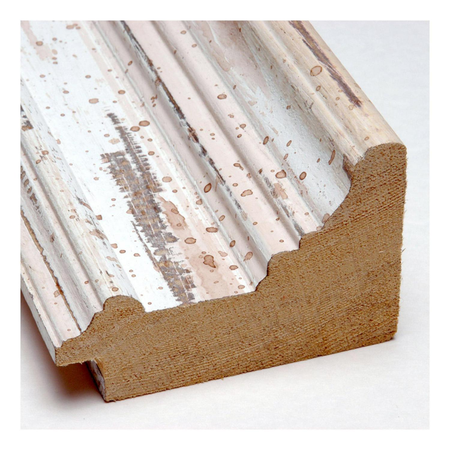 – WOOD FRAME DETAILS: The Alexandria White Wash Frame is a wide, whitewashed frame with outer edge accents. The creamy white finish has tan distressing and weathered patches. The frame is 3 in. wide and stands 2 in. off the wall.