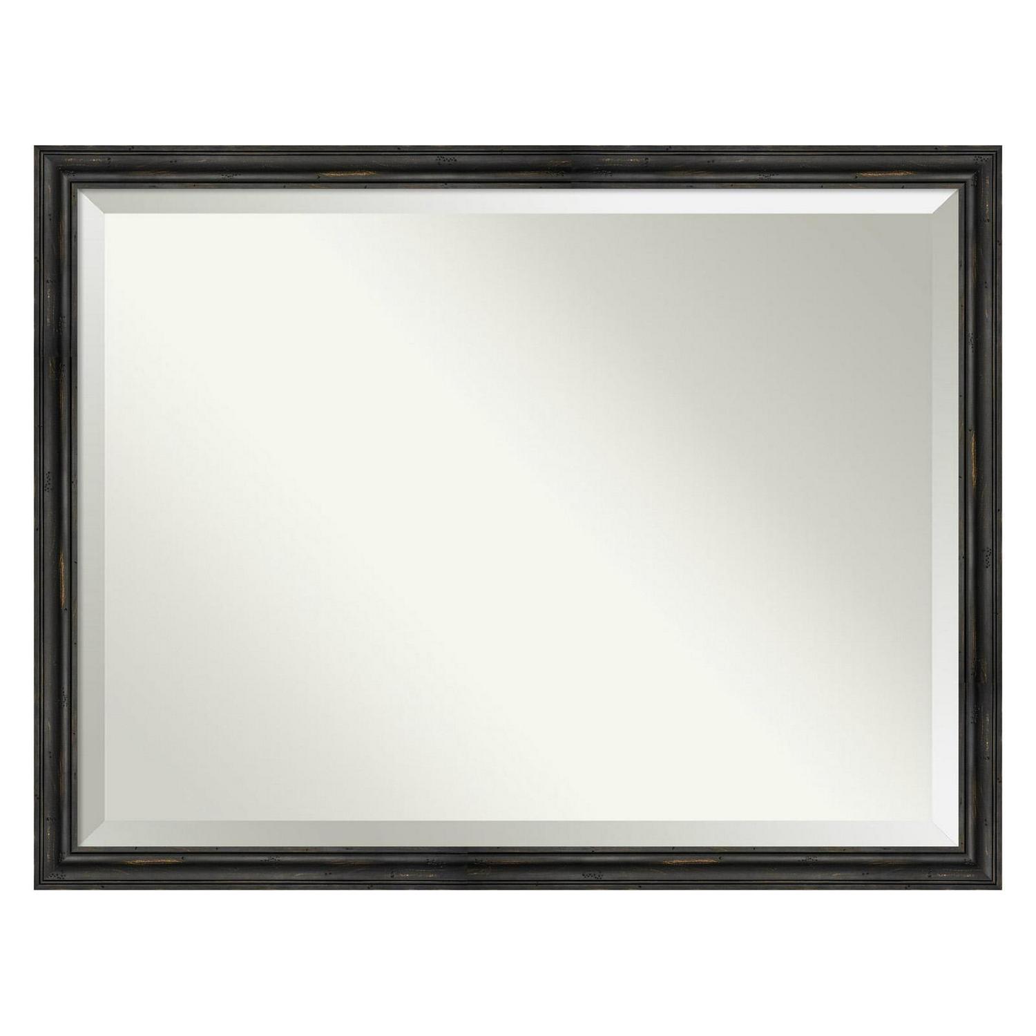 A gently distressed black finish and beveled edges are what make the Amanti Art Rustic Pine Rectangular Beveled Bathroom Vanity Mirror the ideal addition to your bathroom decor. The solid wood and hand craftsmanship provide a warmth and quality which enhances shabby and farmhouse-styled homes. Choose from the available size options to ensure a perfect fit, whether its displayed vertically or horizontally.