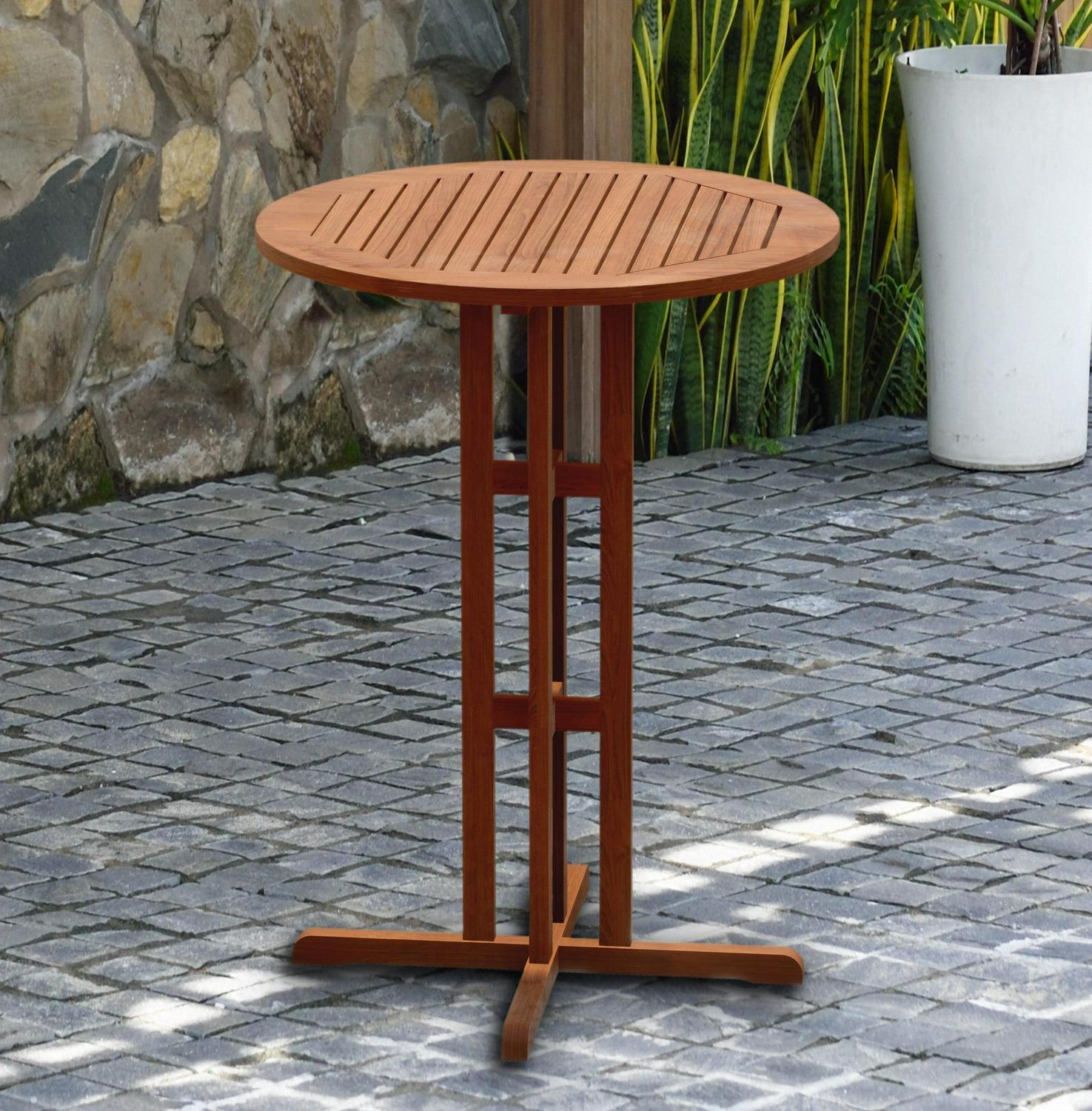 Amazonia Ibiza 1-Piece Patio Round Bar Table Eucalyptus Wood Ideal for Outdoors and Indoors, Brown