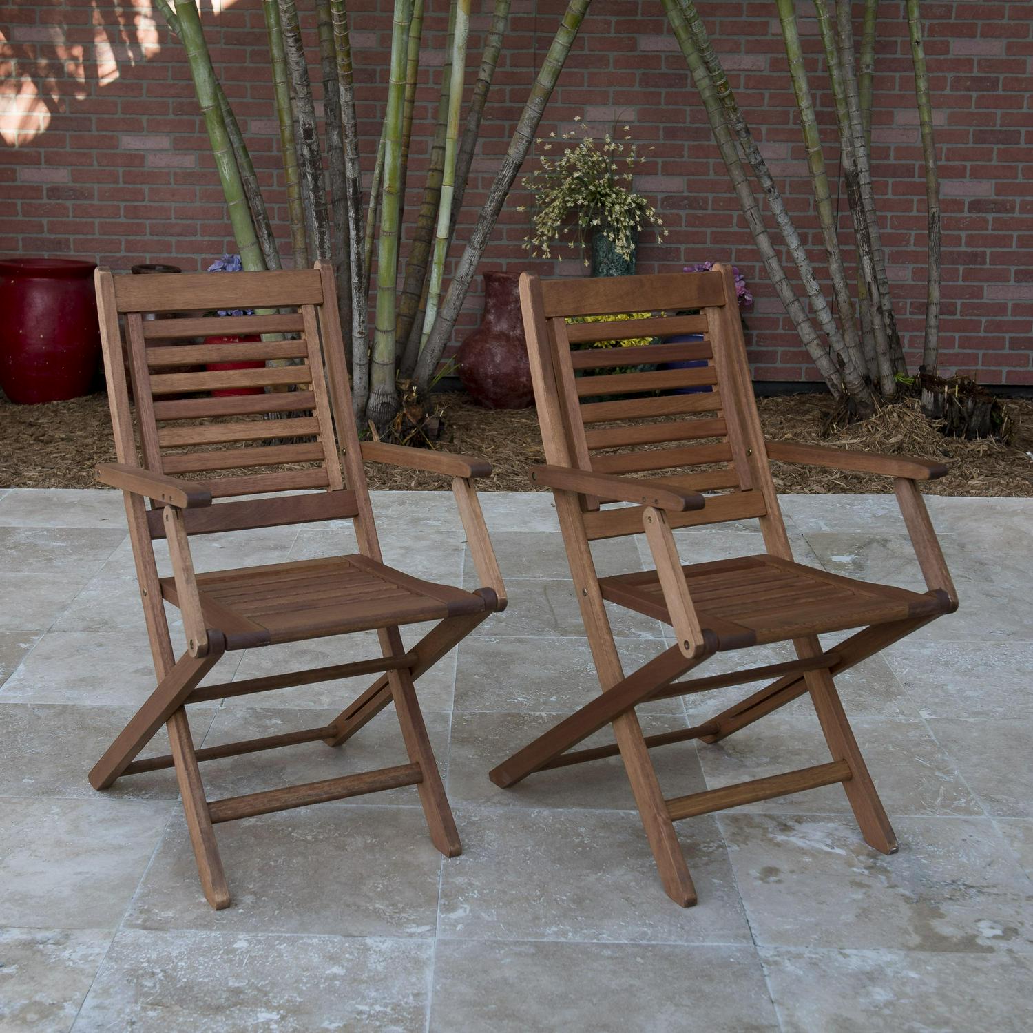 – 2-Piece Set This set includes 2 high quality 100% FSC certified eucalyptus folding armchairs. This set is ideal for both indoors and patio and will make your outdoors an elegant space to enjoy with family and friends.