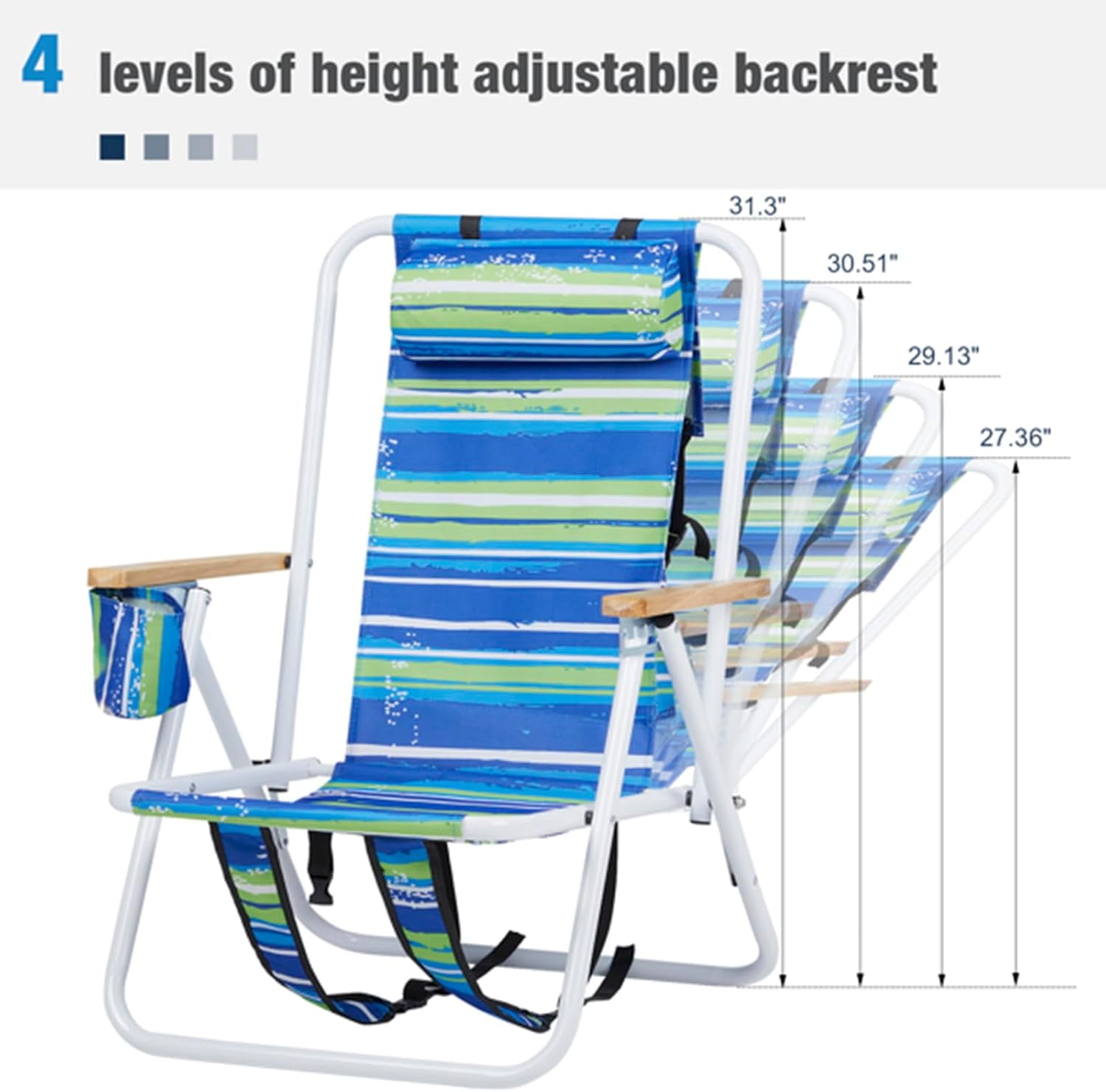 [DURABLE AND LIGHTWEIGHT]:The beach chair frame is constructed of rust-proof aluminum. Each chair is equipped with 600D Oxford fabric. Lightweight, durable and anti-tear. The weight is only 8 lbs, and it support people or beach gear up to 300 lbs. Travel-Friendly Design: Lightweight and foldable with convenient backpack straps, this chair is effortlessly portable, ideal for spontaneous beach trips, camping, and outdoor concerts. Enhanced Comfort: Designed with a plush headrest, elegant wooden armrests, and a built-in cup holder to keep your favorite beverage steady and within reach. These thoughtful features make your relaxation time both enjoyable and convenient. Built to Last: Constructed with a heavy-duty steel frame and fade-resistant oxford fabric, this beach chair ensures durability and color vibrancy for continuous outdoor use.