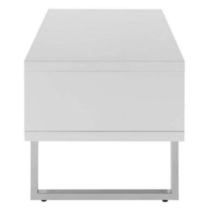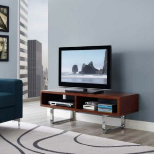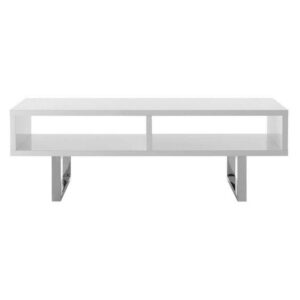 Amble 47″ Low Profile TV Stand Chart out adventures with the Amble 47″ Low Profile TV Stand. Amble”s open design adds dimension while the smooth easy clean white melamine surface creates a sleek modern look. Made of durable fiberboard, Amble features polished stainless steel supports and protective pads. A balanced presence in your living, lounge, recreation or family room, display your television, books, and accent pieces with this standout contemporary modern TV stand and media console table.