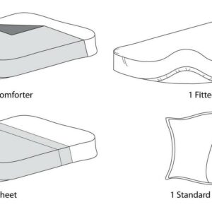 – Each toddler bedding set includes 1 comforter (fitted on 1 end), 1 pillow sham and 1 each 100 percent cotton jersey top sheet fitted on 1 end with elastic and 1 100 percent cotton jersey fitted bottom sheet