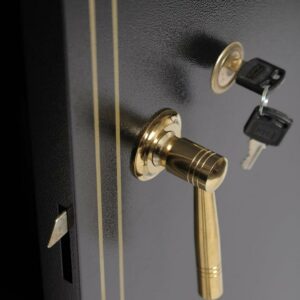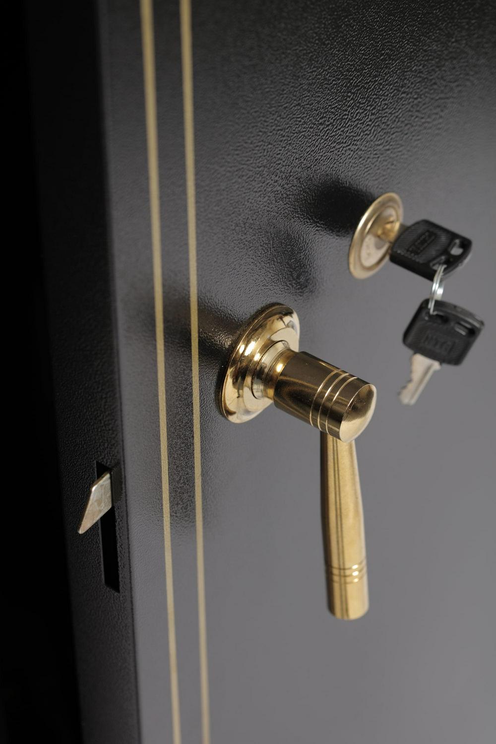 – Polished brass-finish locking handle and key lock