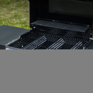– Heavy-duty porcelain-coated grates are rust-resistant and easy to clean