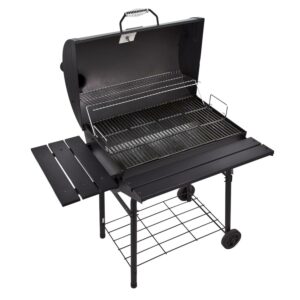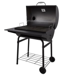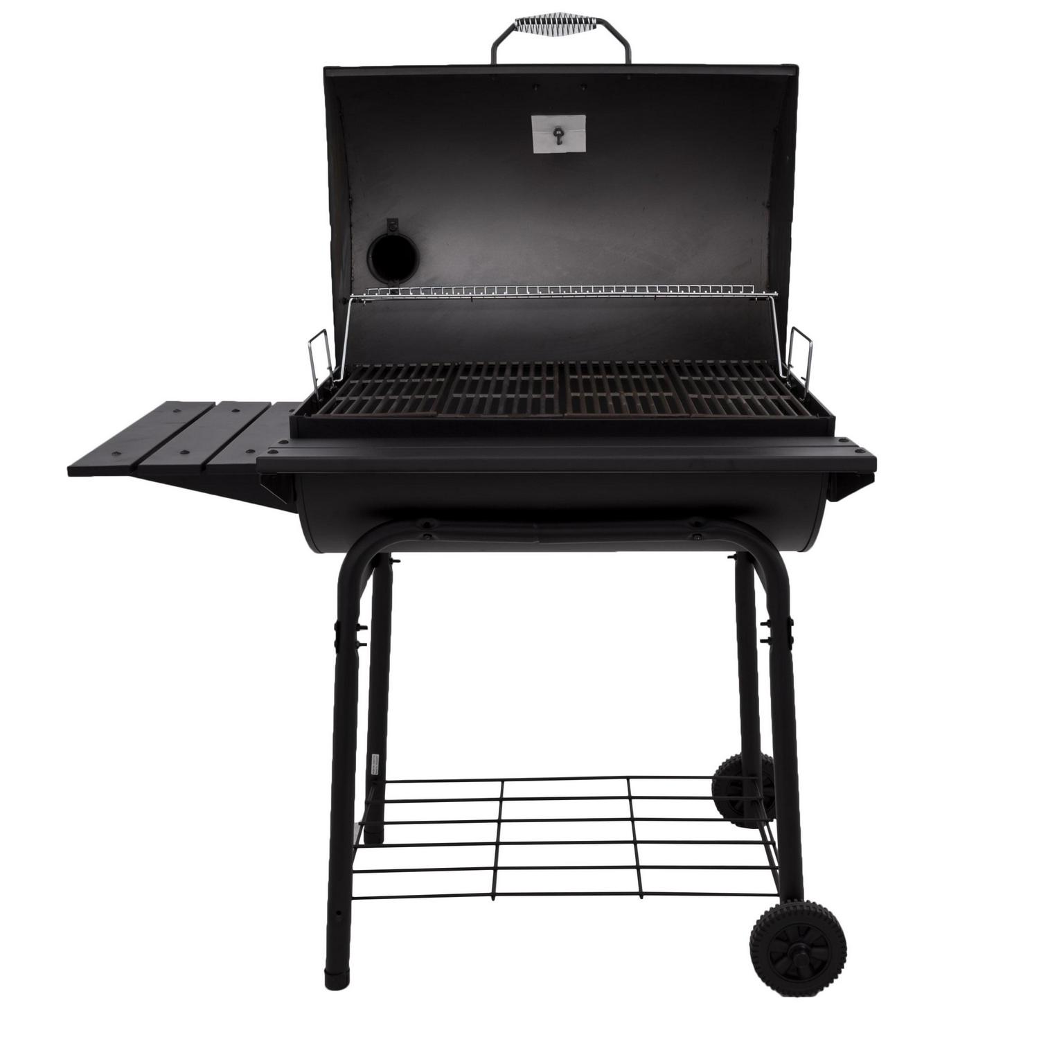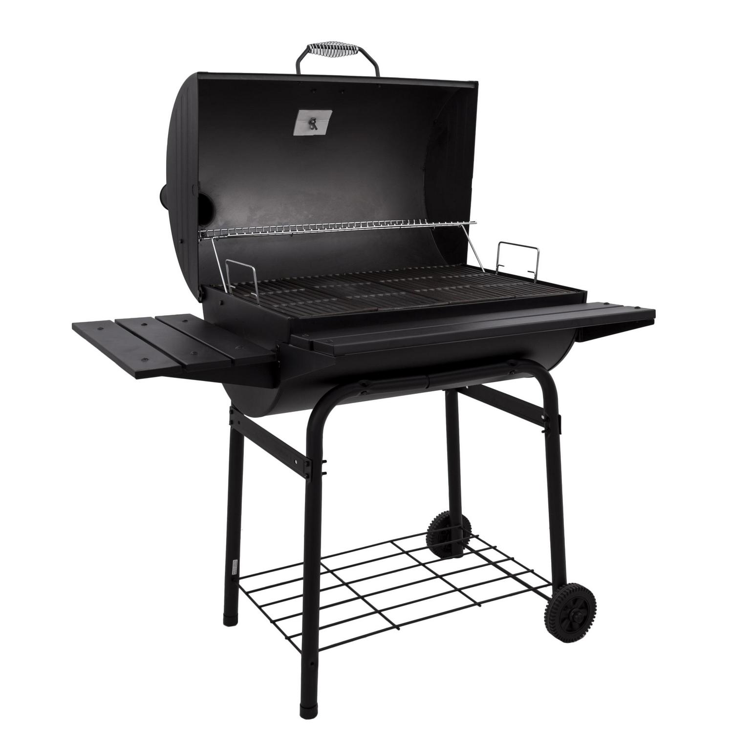 Charcoal grillers will love the American Gourmet by Char-Broil charcoal barrel grill. With 568 square inches of primary cooking space, you can grill for an army. It features adjustable fire grates and dampers, as well as a removable ash pan. The grates are cast iron, which are great for searing. It also features a 272 square inch swing-a-way warming rack, temperature gauge and a handy side shelf. Move the grill easily with rolling casters.