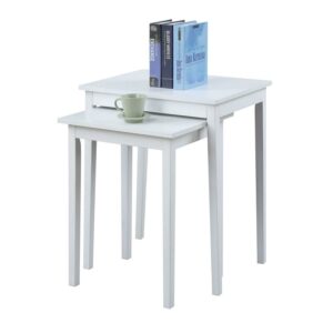 American Heritage Nesting End Tables, Espresso The American Heritage Nesting End Tables are a great option for any home. This set brings a lot of versatility, you can keep them together for extended surface area, then tuck it away when you are finished! You can also separate them on different sides of the room, or even different rooms! Available in multiple finishes and with multiple uses this nesting table set will easily complement any decor.