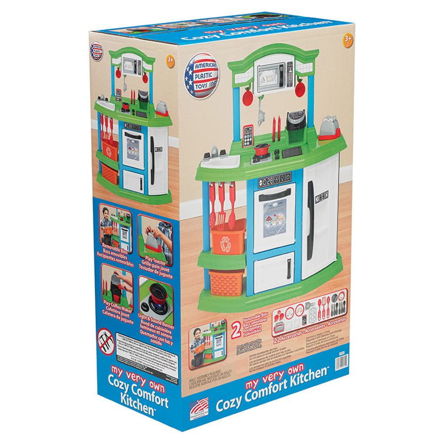 American Plastic Toys Cozy Comfort Play Kitchen with 22 Piece Accessory Play Set Toy for Kids