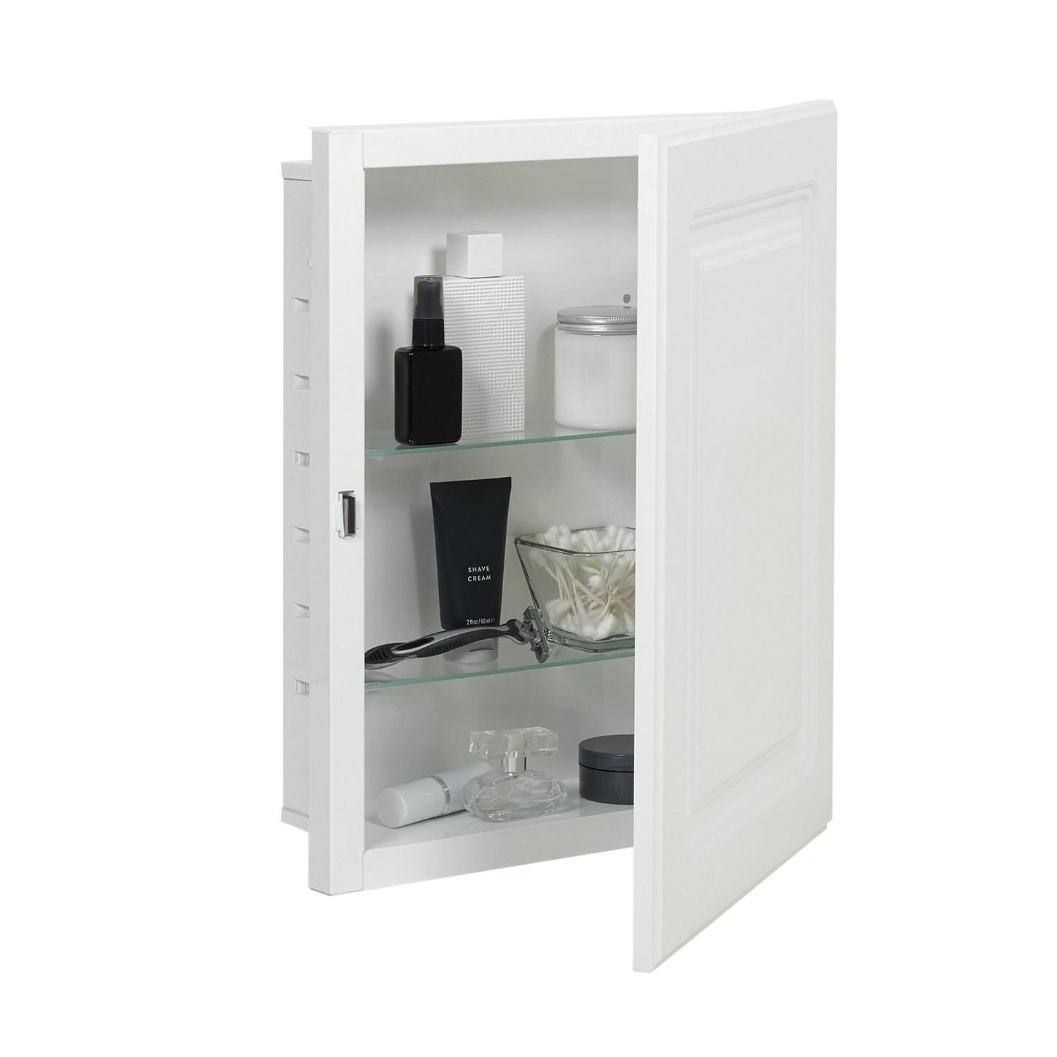 The American Pride Recess-Mount Medicine Cabinet provides a simple, attractive and effective solution for updating and decluttering your bathroom. For storage of basic bath essentials, this recessed medicine cabinet gets the job done in any bathroom. The cabinet boasts an all-white powder coated steel body for style, strength and durability, as well as two adjustable inner glass shelves and one fixed bottom steel shelf to organize and store your bathroom essentials. The stylish raised panel door features a piano hinge for strength and stays shut with a magnetic catch. Recess-mount installation is easy and ensures this cabinet will fit snugly into your wall, giving you full functionality while preserving valuable bathroom space.
