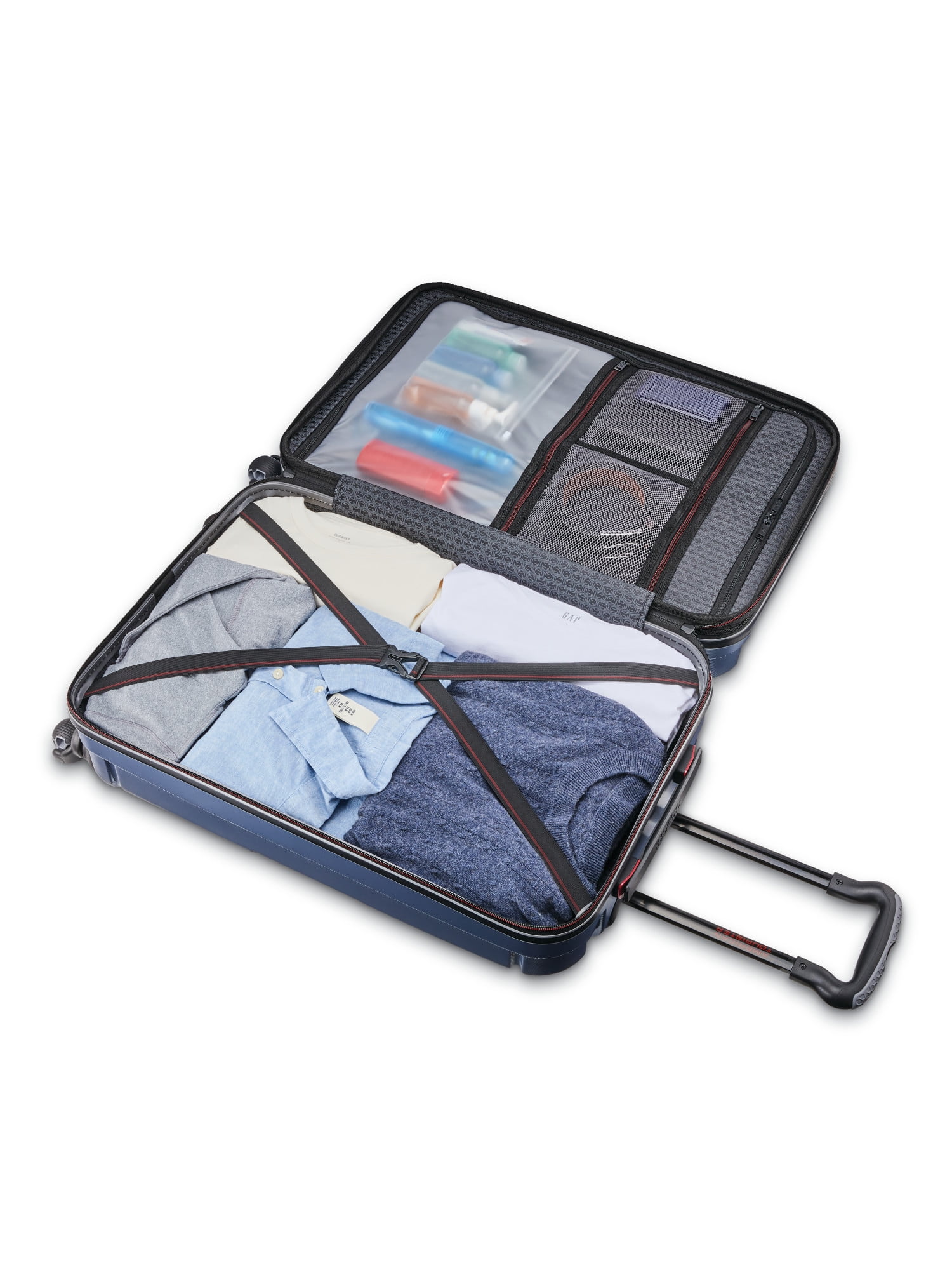 American Tourister Cargo Max 25″ Hardside Durable Medium Checked Spinner Luggage with Divider Pockets, Slate Blue