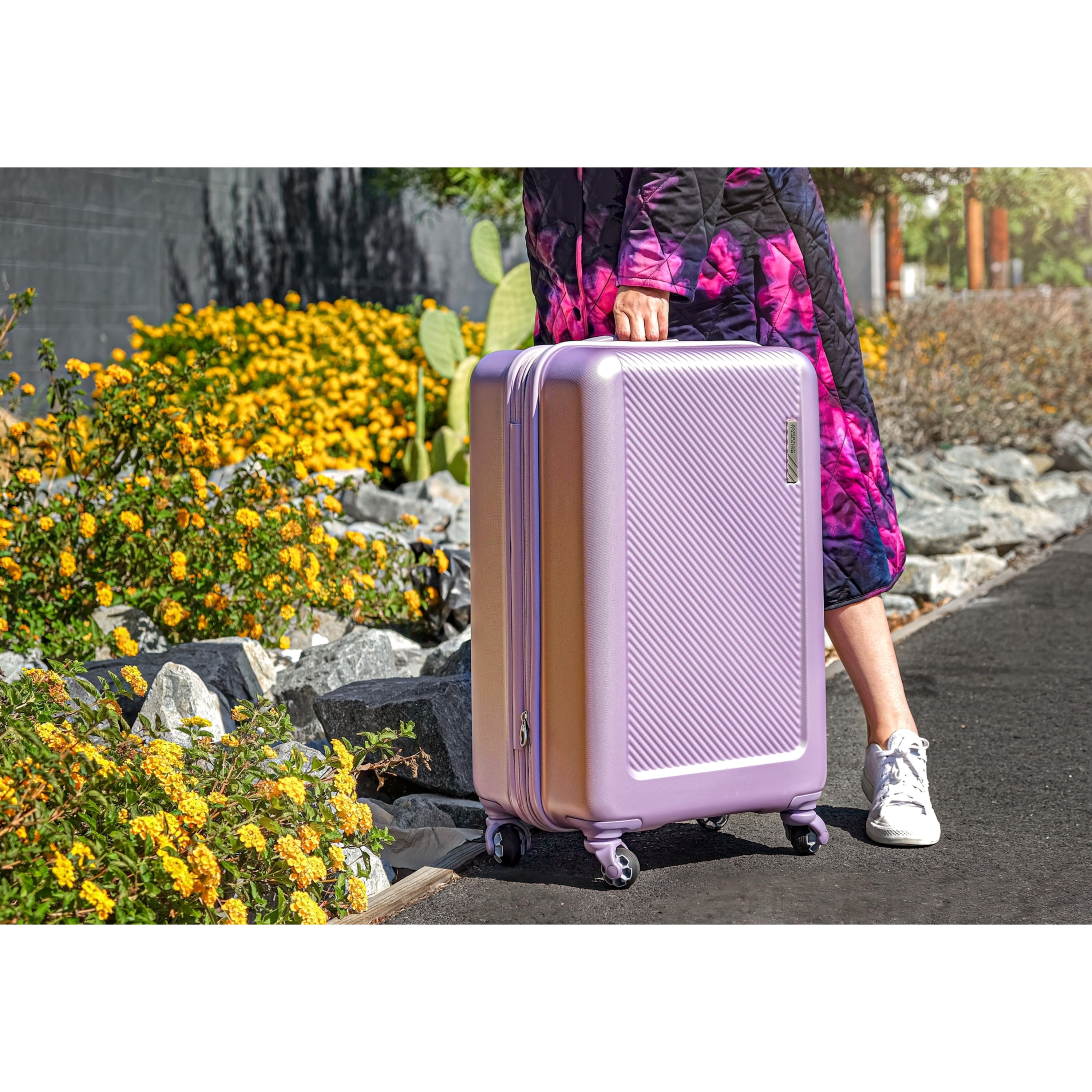 Wear-tested double spinner wheels deliver maximum stability Rugged and durable textured ABS plastic stands up to any trip A roomy interior with shoe pockets and wet pack pocket keep all your belongings in order