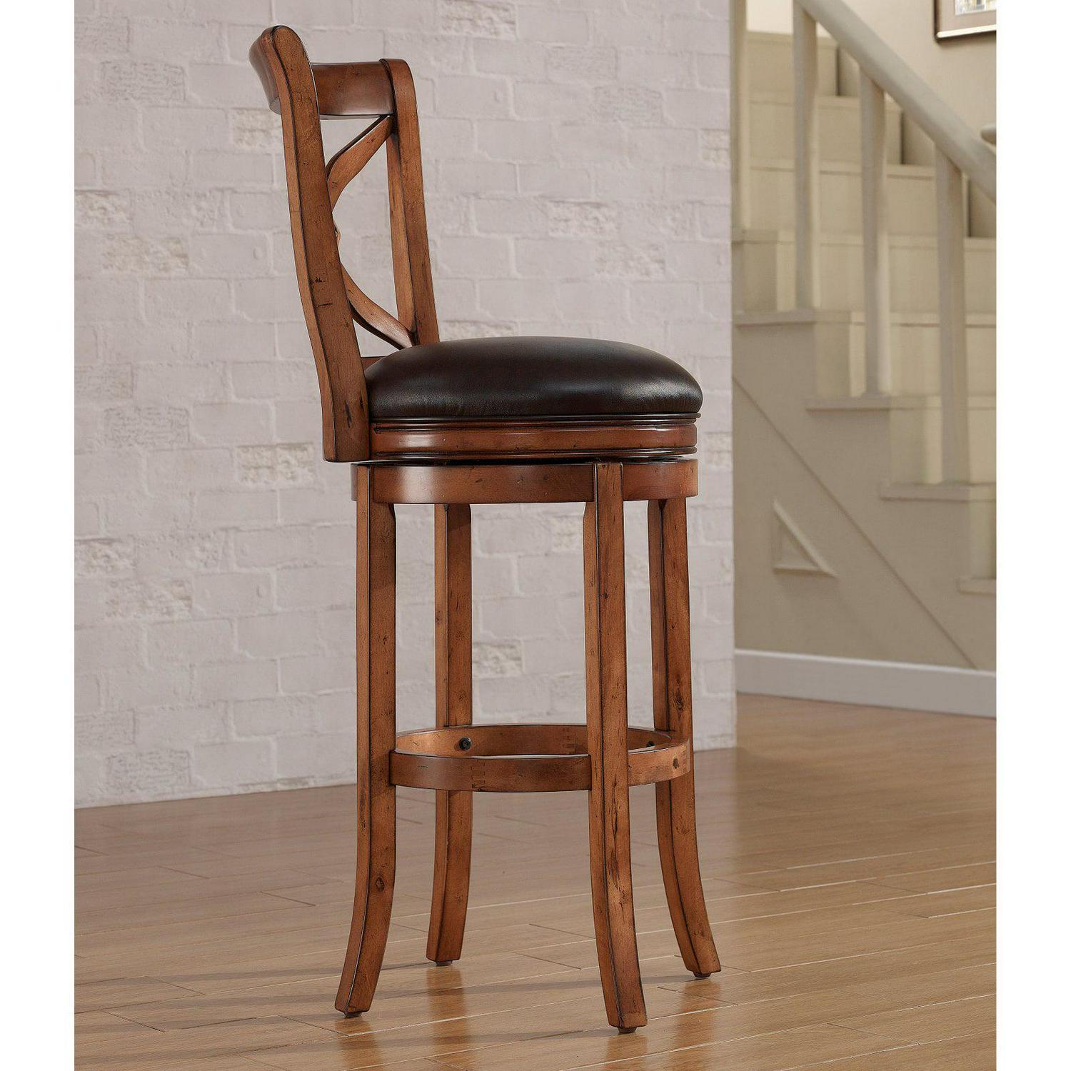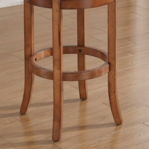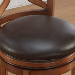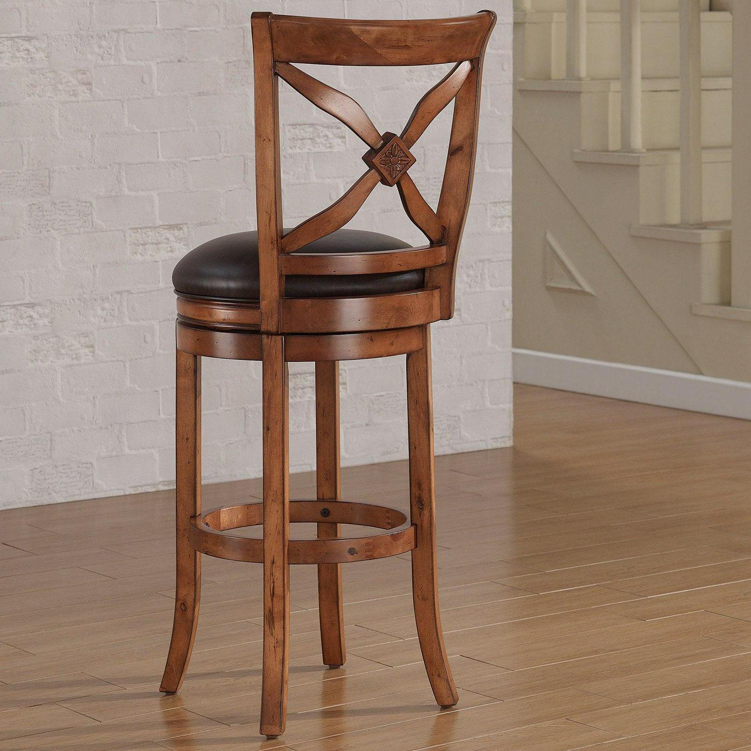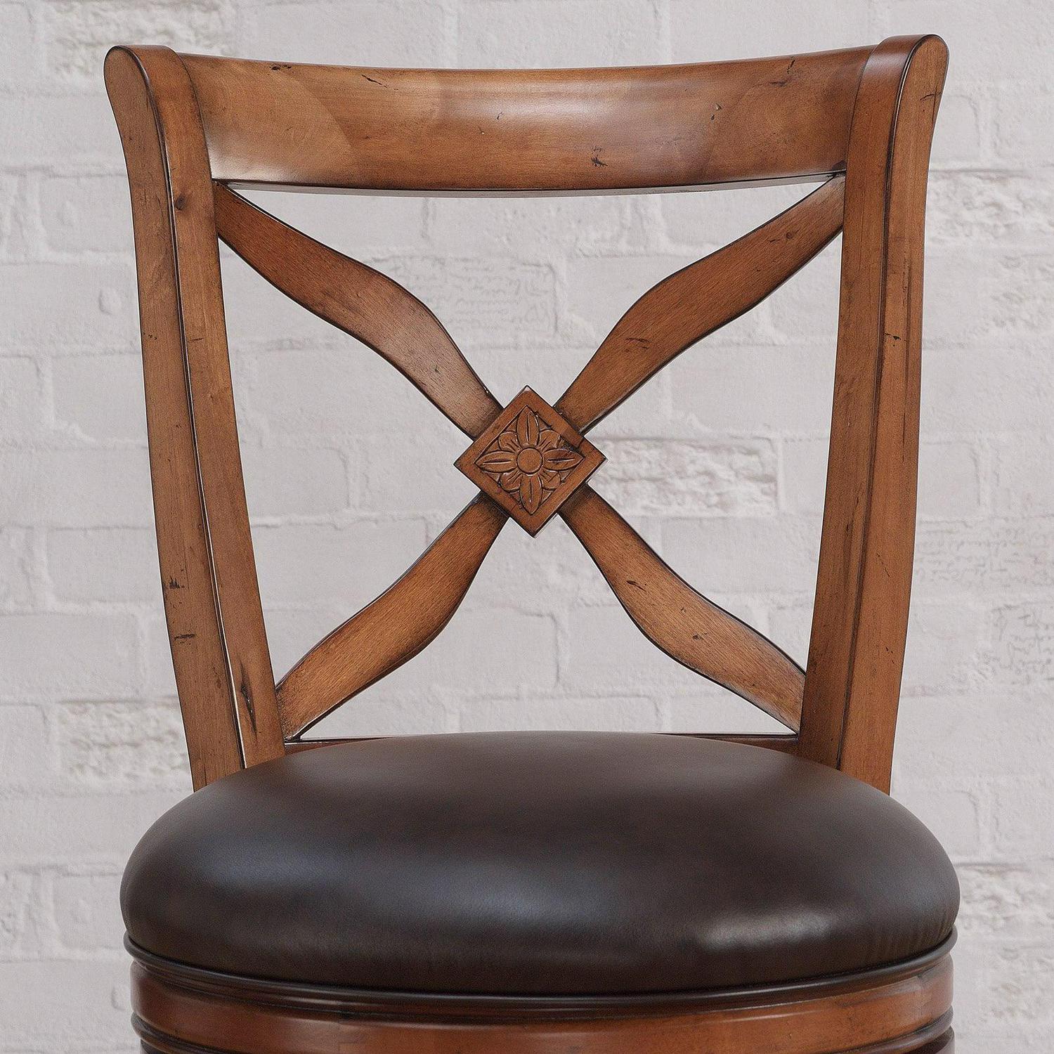 The Provence Counter Stool offers an antique look with modern construction and features, just right for a traditional bar or lounge. Made of solid hardwood with a Light Oak finish and a Bourbon bonded leather seat, this swivel stool features a French Curve X back with a carved flower rosette.