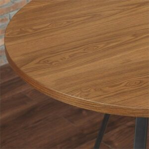 The table’s base is constructed of strong metal while the tabletop is made from engineered wood and oak veneers. This piece comes in a golden oak and slate gray metal finish. With its clean lines and minimalist design, this circular pub table is a must-have for any contemporary home.