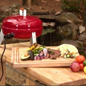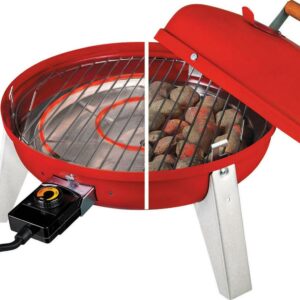 Enjoy the flavors of summer with the Americana 4-in-1 Electric and Charcoal Water Smoker. This multi-functional smoker doubles as an electric or charcoal Lock N Go grill. The interlocking hood and bowl can go with you to the campsite or the tailgate party. A 5.5 quart water pan ensures that your smoked meat is tender and juicy. A built-in temperature gauge allows you to monitor the temperature. Check on the water or add wood chips with the sliding access doors. Plug this smoker into standard electrical outlets. Smoke tender and flavorful food to perfection in your own backyard with this versatile and easy-to-use smoker.