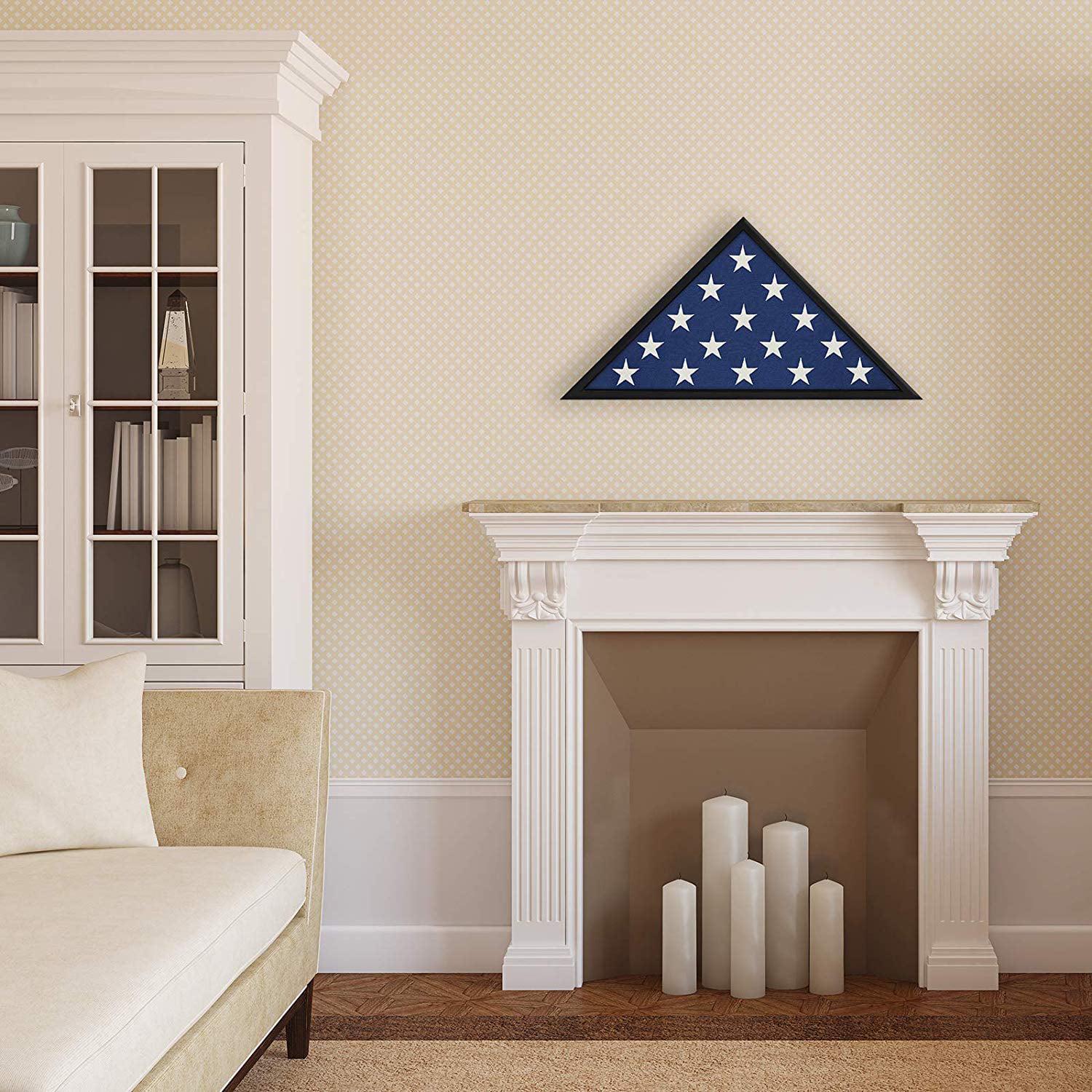 Americanflat Flag Case for Veterans – Fits a Folded 5′ x 9.5′ American Military Flag – Triangle Display with Polished Plexiglass (Black). Display your veteran’s flag as a powerful and moving addition to your home or office