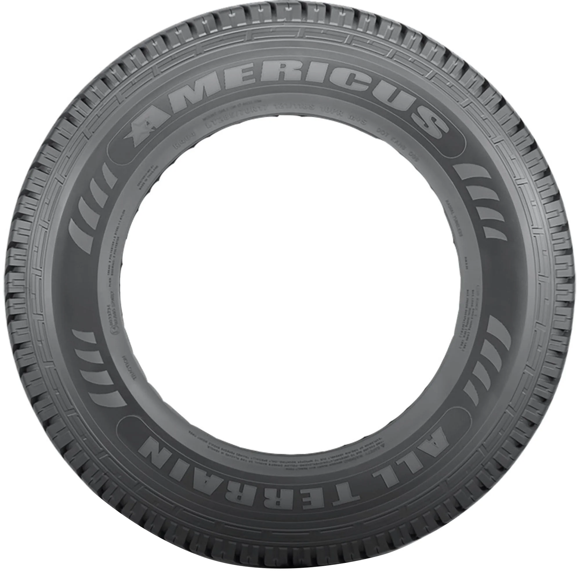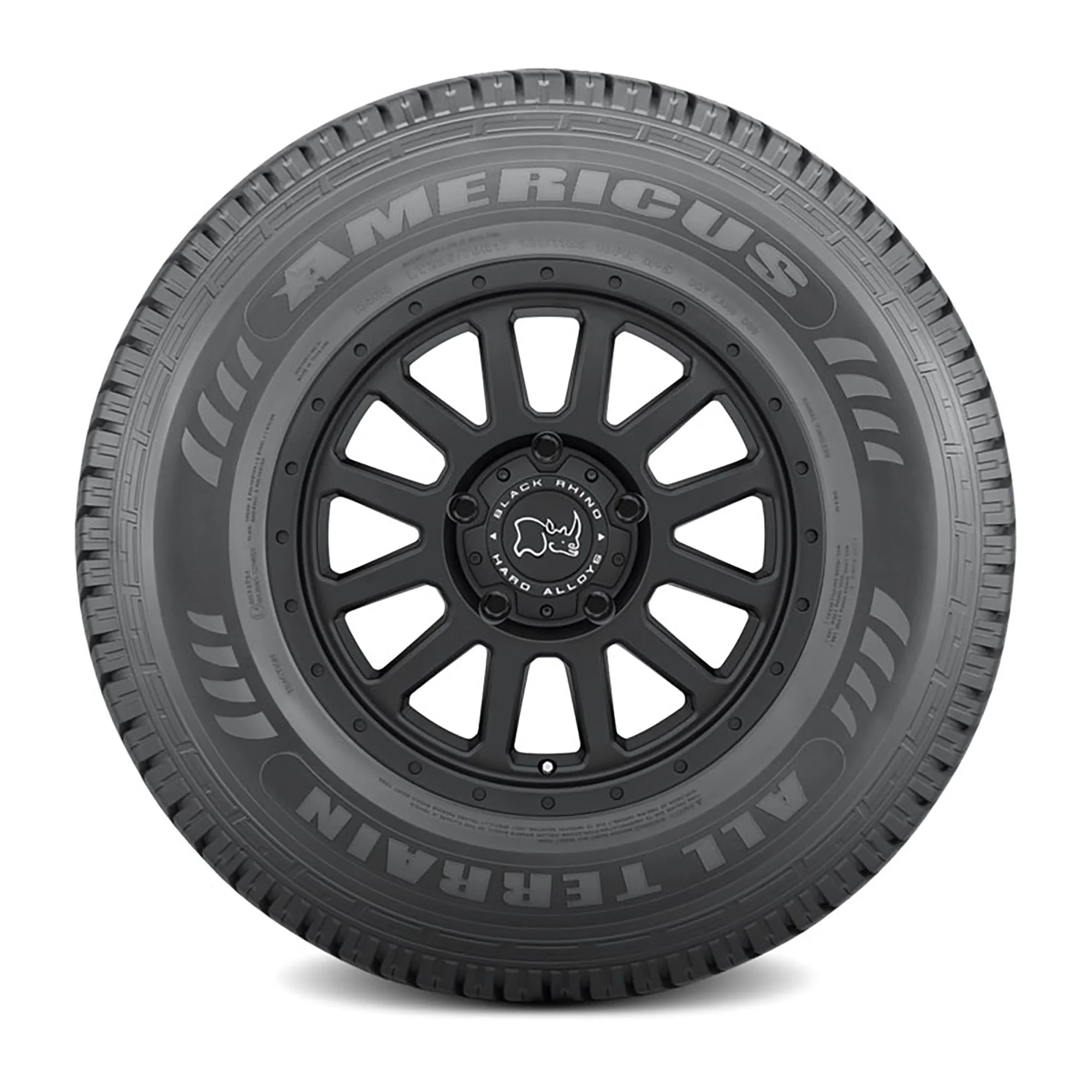 Americus All Terrain 275/55R20 117T XL OVERVIEW Designed for use on trucks and SUVs, the Americus All Terrain tire delivers reliable traction off the pavement with a quiet, comfortable ride on the highway. The All Terrain features a robust tread pattern with angled and lateral grooves that enhance grip while keeping road noise low, an innovative connected center rib, and a shoulder design that resists hydroplaning and improves handling. Additionally, the All Terrain is backed by a 55,000 mile limited manufacturer tread life.