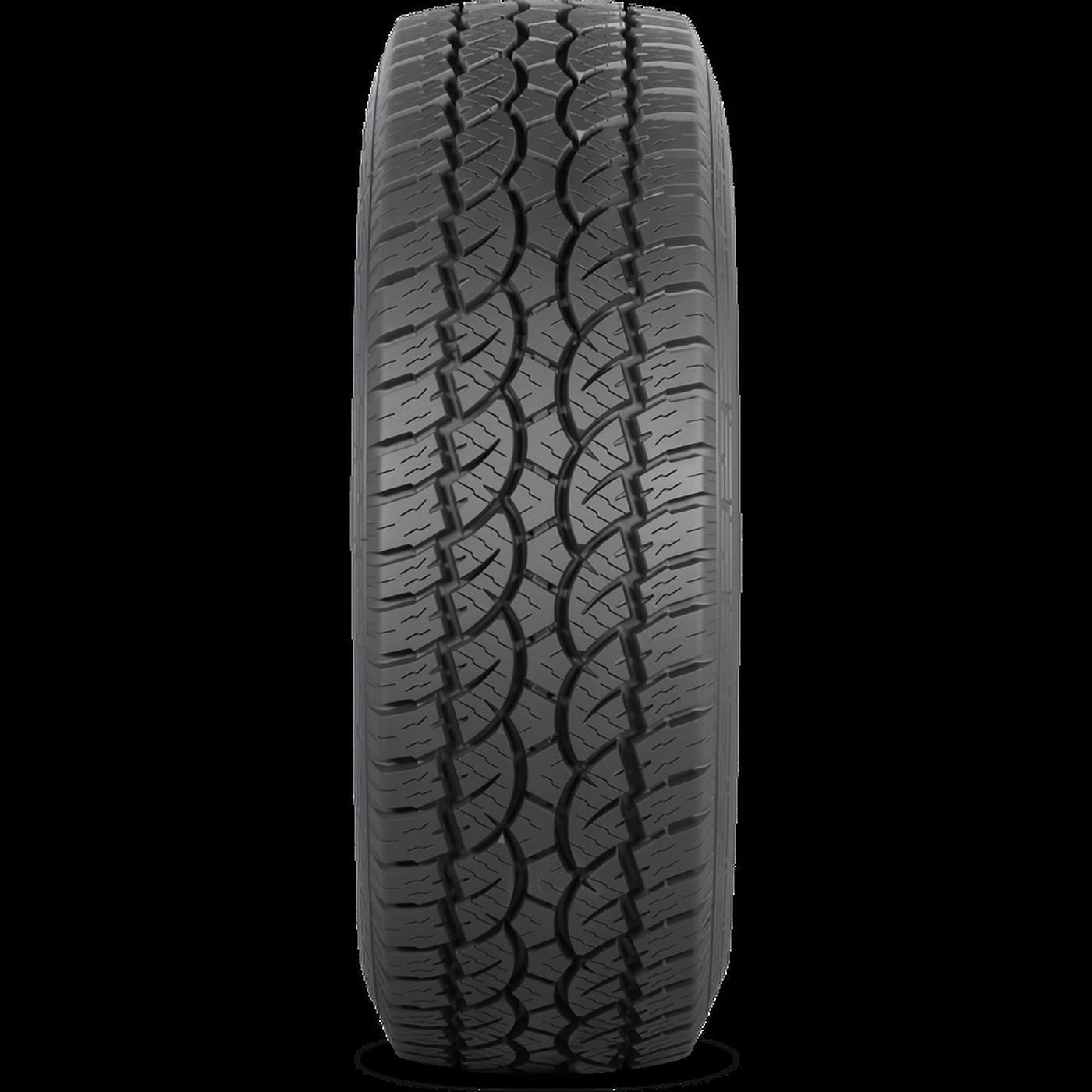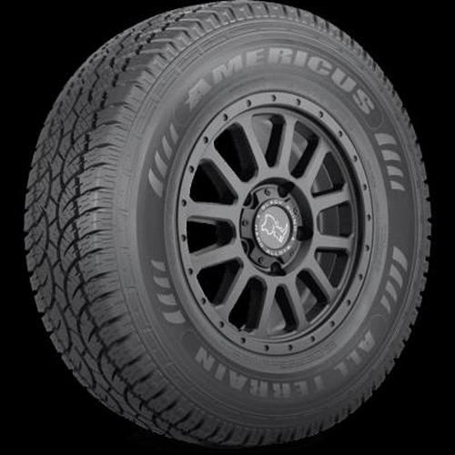 The Americus Rugged A/TR is a rugged terrain, all season tire manufactured for SUVs and light trucks. Americus offers a 45,000 miles treadwear warranty with this model. The tire improves the rugged terrain performance. The aggressive tread design utilizes the groove placement and the staggered blocks to optimize the off-road traction, while promoting excellent on-road comfort levels. The tread elements allow the tire to improve the forward motion on soft, loose and uneven terrain surfaces. These tread elements, which reach the sidewalls, provide the needed biting edges to optimize the versatile off-road terrain traction at all times. The tread design also keeps the footprint clean by eliminating mud and snow, and ejecting rocks from the footprint. This allows the tire to avoid stone retention from harming the casing by drilling rocks into the footprint. It also prevents mud and snow from blocking the surface contact during its off-road performance. The better surface contact upgrades the controllability. The constant versatile terrain contact ensures the tire s forward motion at all times, which improves the steering responsiveness and the driving stability. In other words, the tire is quicker and more precise response to the driver s commands, while the structure is secured against the driving pressure affecting the tire. The shoulder block pattern optimizes the cornering ability with the use of extra biting edges. The tire s strengthened internal structure keeps the ideal tire shape under the load and driving pressure. As the tire does not allow the shape to deform, it further upgrades the overall load capacity. The model also promotes excellent all weather traction. The detailed footprint and the stronger compound elements work together to improve the dry, wet and winter weather traction. Furthermore, the tread is pinned for studs, which can greatly improve the winter weather, ice and snow grip. During the tire s on-road performance, the ideal groove placement disperses water and slush from the footprint, resisting hydroplaning in the process. The Rugged A/TR offers a longer lasting usability. The stabilized footprint and the durable compound work together to improve the tread life. The secured stability of the tread elements allows the tire to evenly distribute the driving pressure across the tread area. The equally spread out forces of acceleration, cornering and braking prevent premature and irregular wear formations. On the other hand, the stronger compound elements optimize the rubber flexibility, minimizing the overall treadwear rate. This greatly elongates the model s service life.