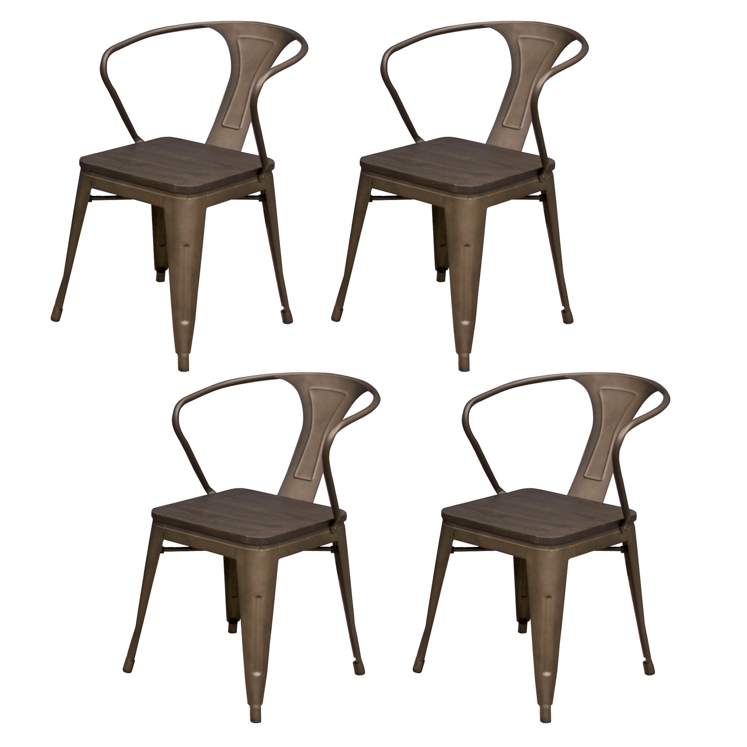 AmeriHome 4 Piece Rustic Gunmetal Finish Dining Room Chair with Dark Elm Wood Seat