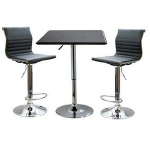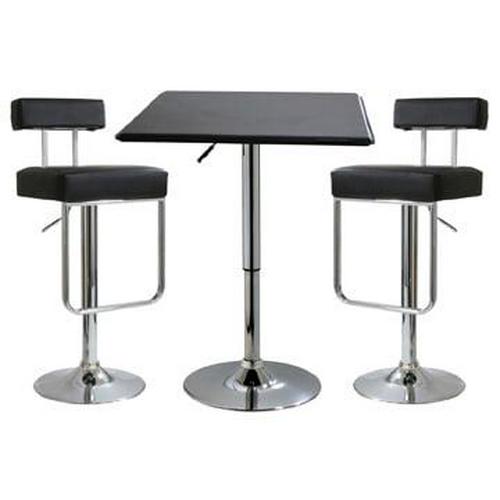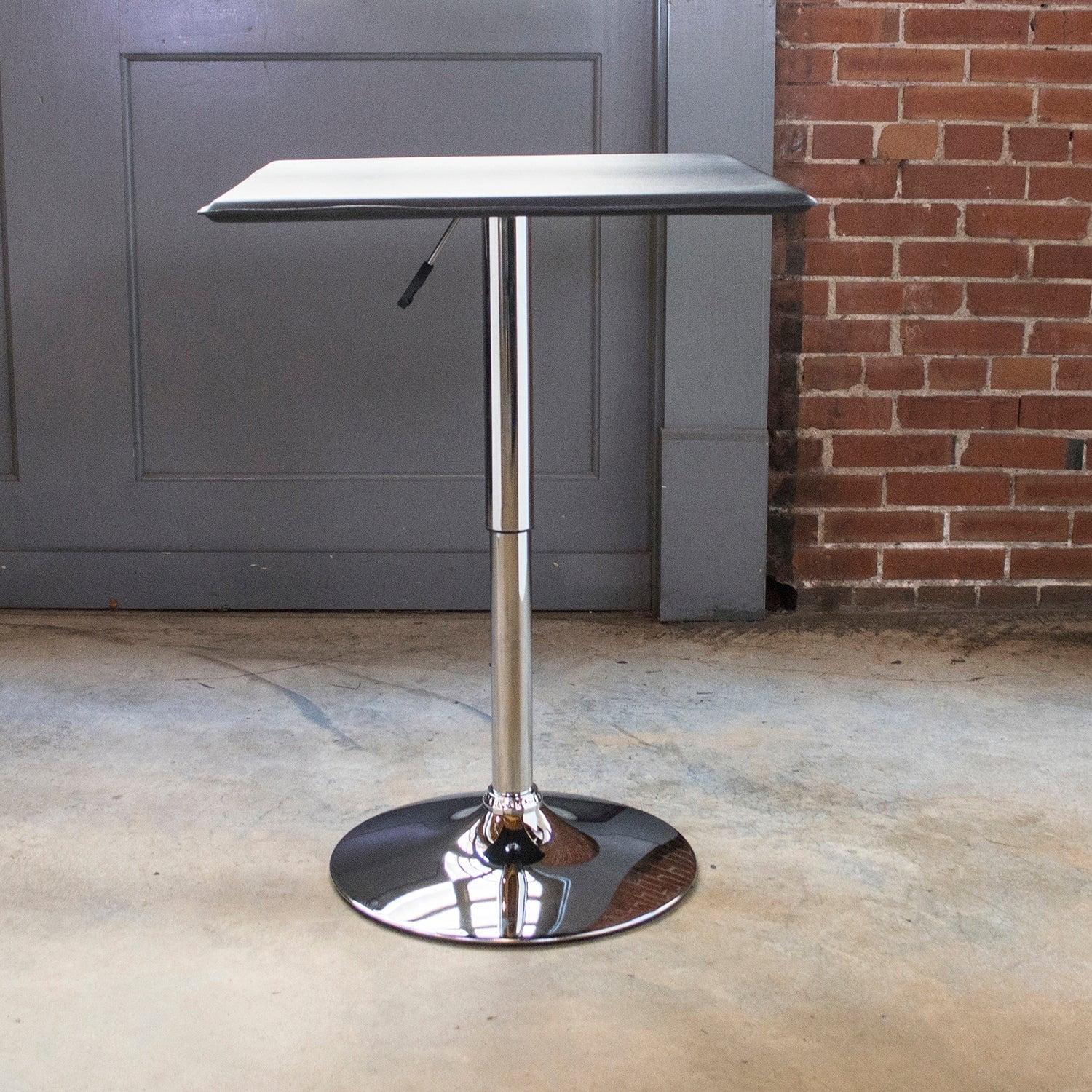 The AmeriHome Square Adjustable Height Bar Table makes a great addition to your bar, game room, or basement. This Bar Table provides an easy way to add dining space to your kitchen, staff room, or restaurant. This table features a polished chrome base that is accented with a black top for a hint of classic vintage design. The tabletop measures 25 inches square, making it big enough for a meal for two but still small enough to use space economically. The textured vinyl on the tabletop makes wiping up spills easily and resists staining Features.