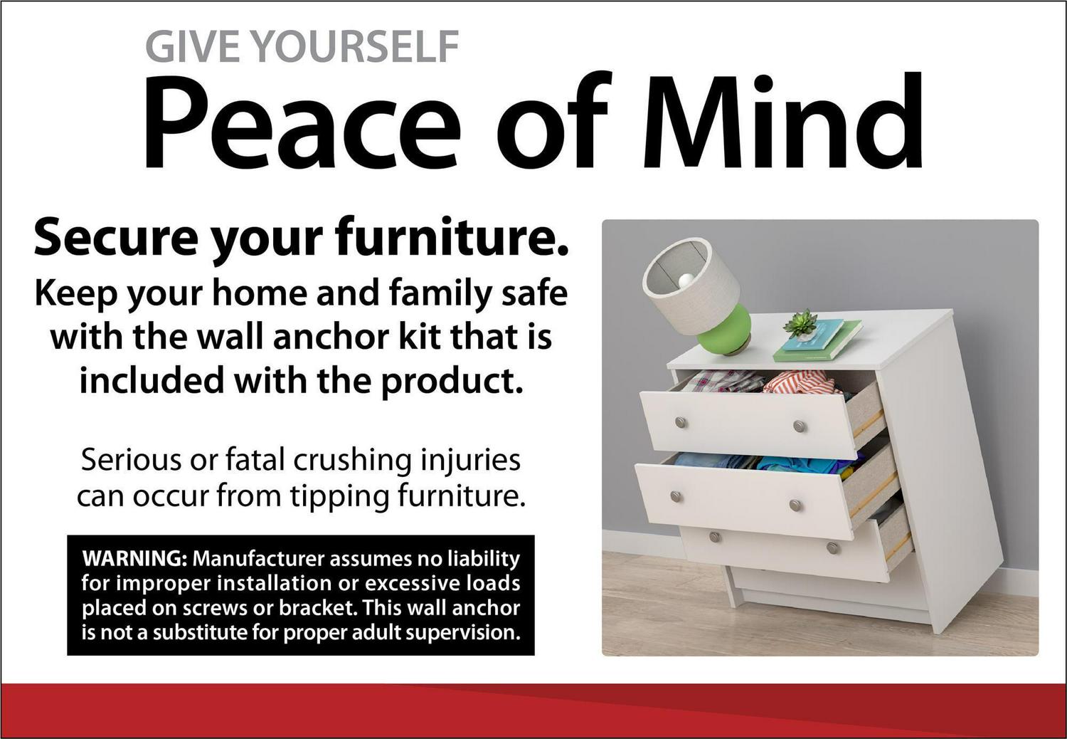 – A wall anchor kit is provided with this item to secure the Dresser to the wall and prevent tipping injuries
