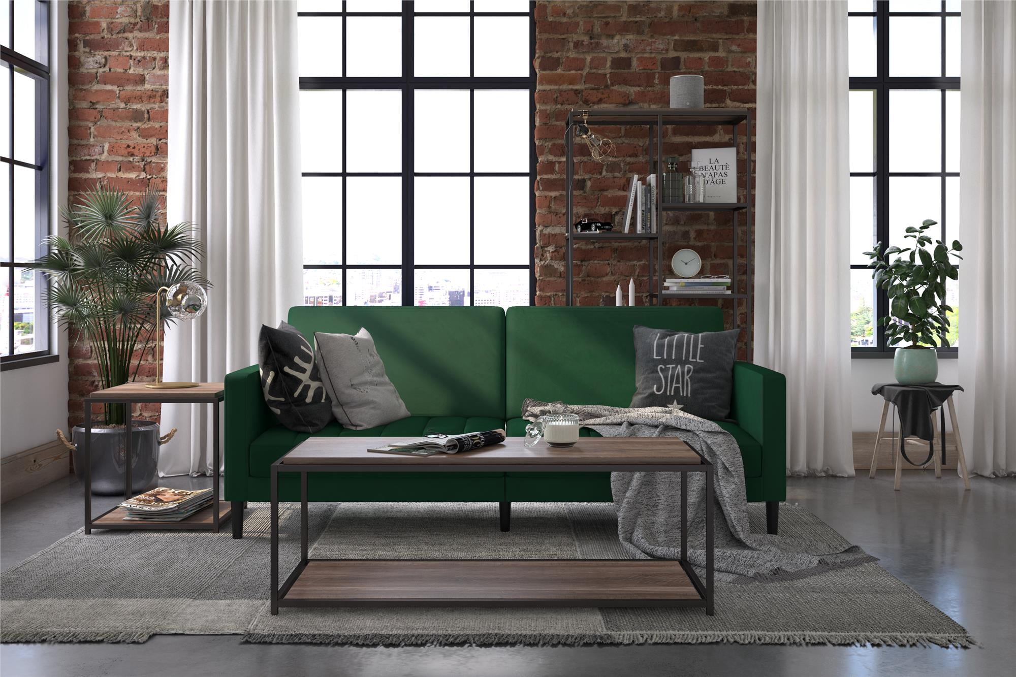 MODERN END TABLE: Complete your living room with the ultra-modern End Table from Ameriwood Home Fayette collection DISTRESSED WOODGRAIN DESIGN: Crafted from laminated engineered wood with a sturdy metal frame, this end table features a distressed woodgrain finish, creating a stunning statement piece for your living room SPACIOUS TABLETOP: Keep essentials within reach on the generously sized tabletop of this end table FLOATING TABLETOP DESIGN: Achieve a high-end look without breaking the budget with the floating tabletop design of this end table ASSEMBLY AND CAPACITY: This end table ships flat and requires assembly by two adults. Each of its tabletop and lower shelf can hold up to 50 lbs. Assembled dimensions are 21.46″H x 20″W x 20.43″D 1-YEAR LIMITED WARRANTY INCLUDED: Call centers, staffed by live agents in both the U.S. and Canada, are at your service for any needs related to replacement parts, assembly assistance, or inquiries about warranties