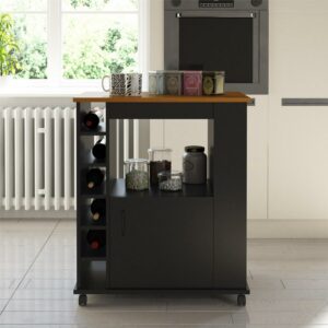 – VERSATILE STORAGE: The Cart contains a variety of storage options for all your kitchen needs: 6 bottle cubbies, an open display shelf, cabinet space, 3 side shelves and a wide top surface you can use as a workstation or for decoration