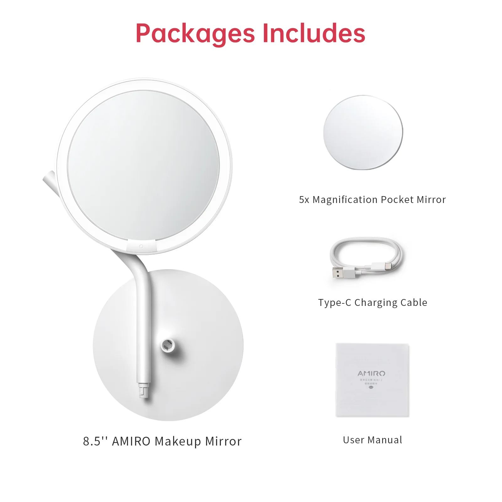 AMIRO 8″Lighted Makeup Mirror with 5X Magnifying Small Mirror, 5 Brightness, Touch Control, White