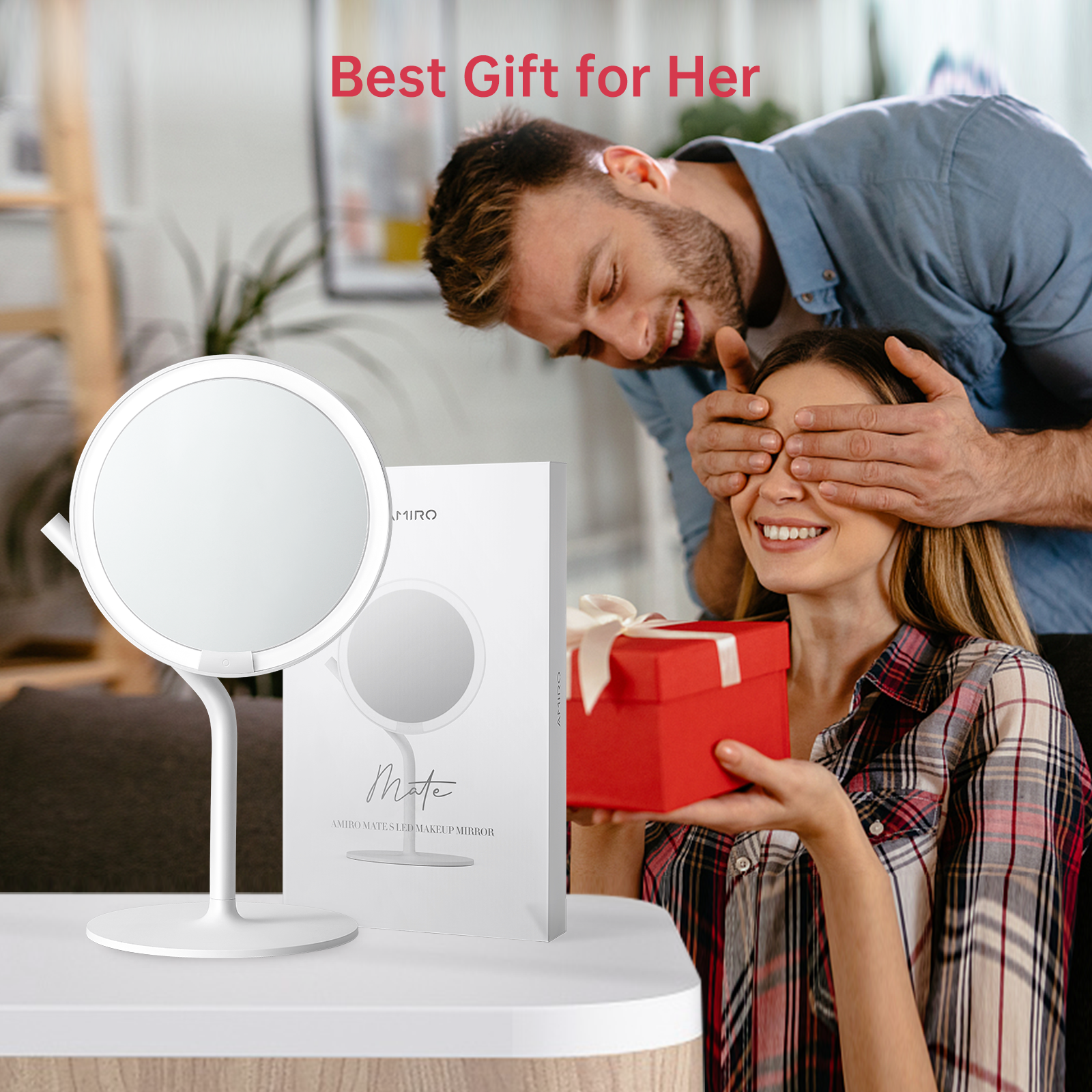 The lighted makeup mirror has ultra high CRI 97, 1100lux high definition, and has up to 95% daylight similarity. Providing white light, warm light, cold light and brightness adjustment, the light is soft and can cover all corners of your face. Short press the sensor switch to change the color of the light, press “+/-” to adjust the brightness of the light, meet all your needs in different environments. The vanity mirror also has memory function, it will remember the last brightness you need.