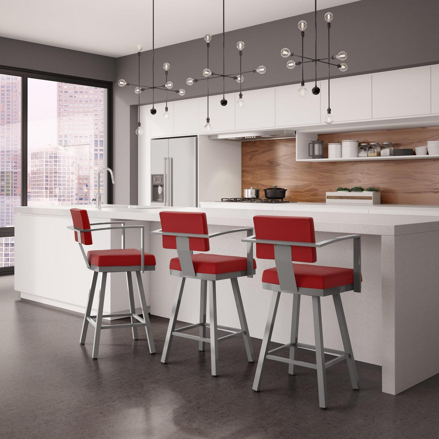 Amisco Akers 26 In. Swivel Counter Stool – Red Polyester / Metallic Grey Metal