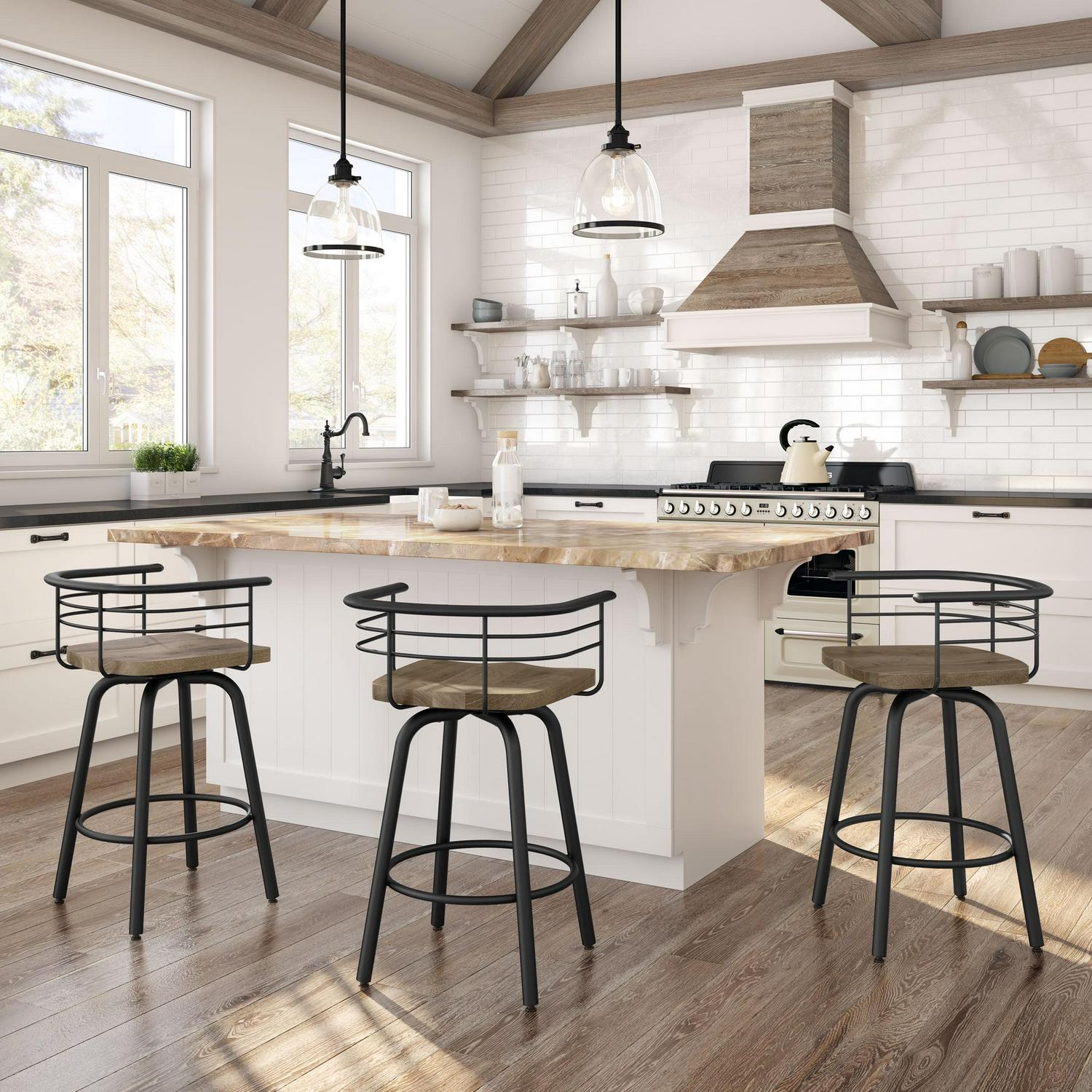Amisco Brisk 26 In. Swivel Counter Stool – Beige Distressed Wood / Black Metal
