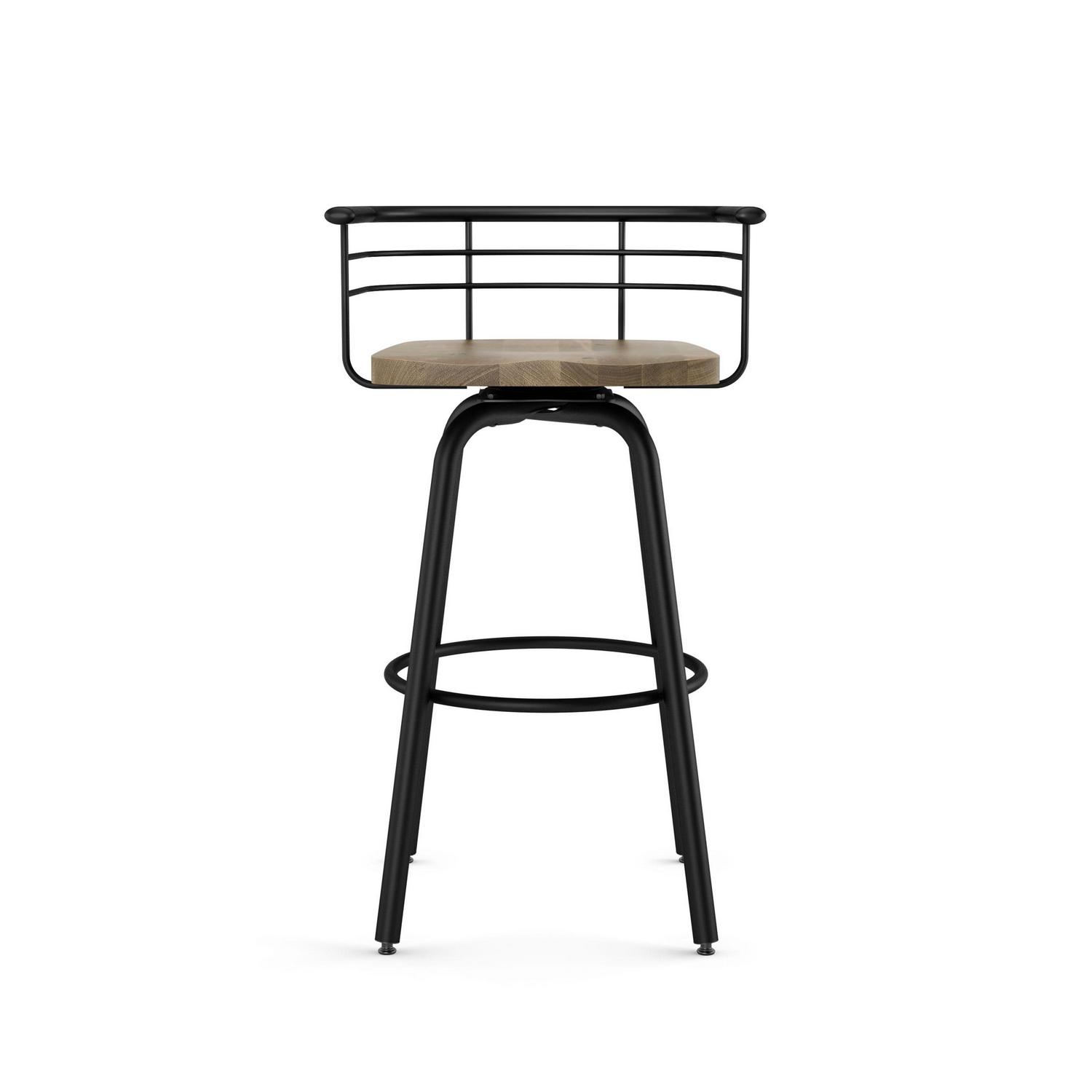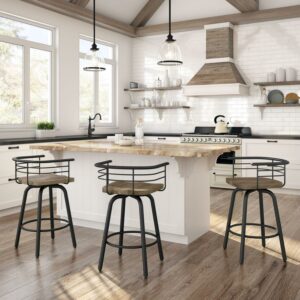 Amisco Brisk 30 In. Swivel Bar Stool – Beige Distressed Wood / Black Metal