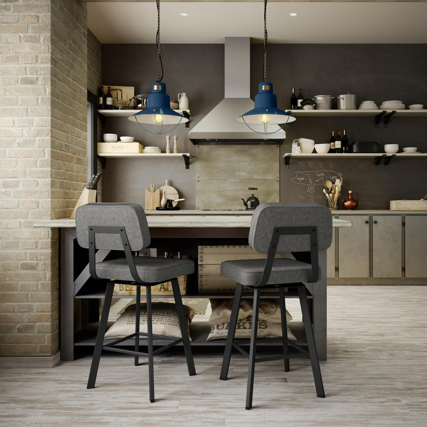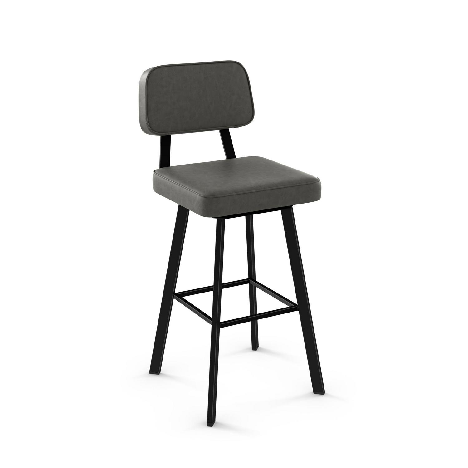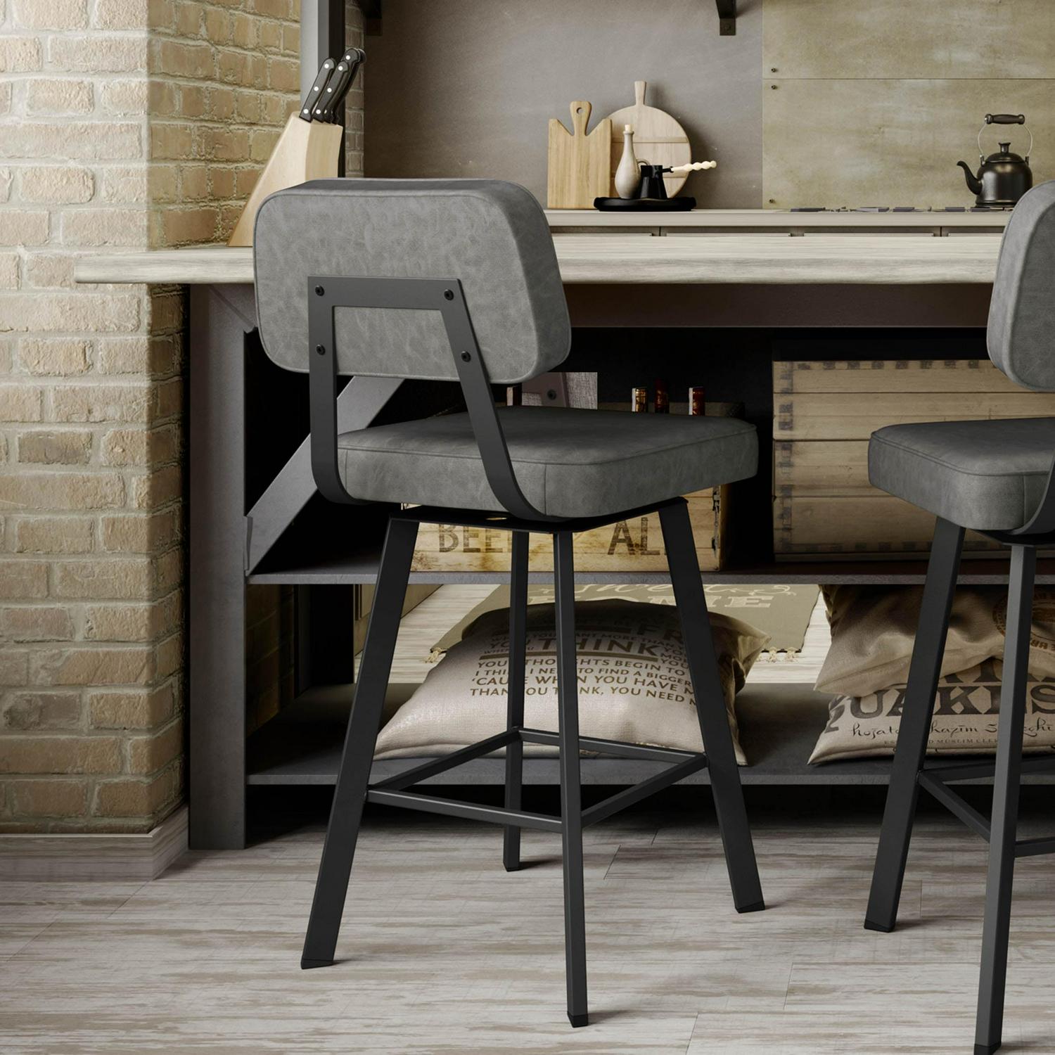 Amisco Clarkson 26 In. Swivel Counter Stool – Grey Faux Leather / Black Metal