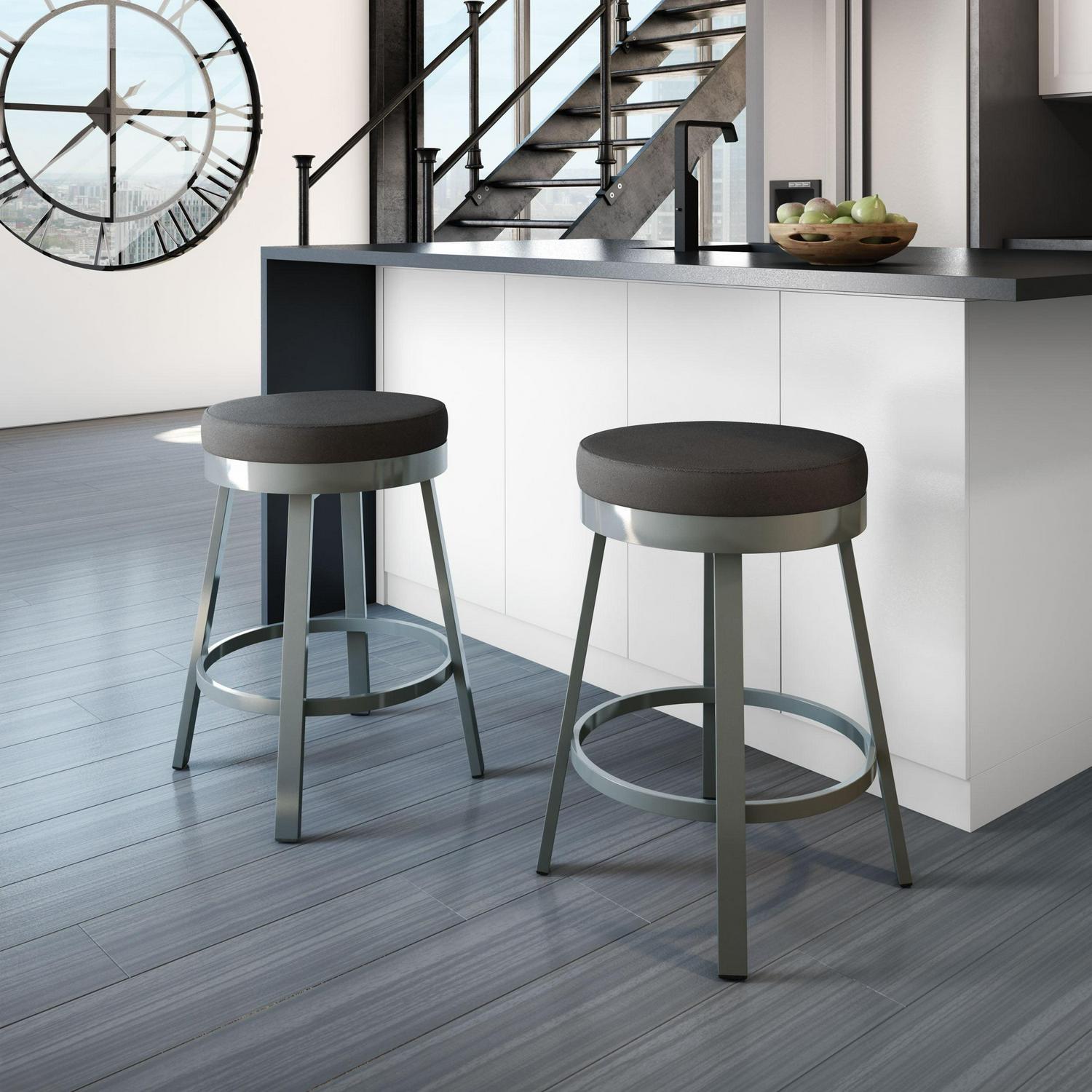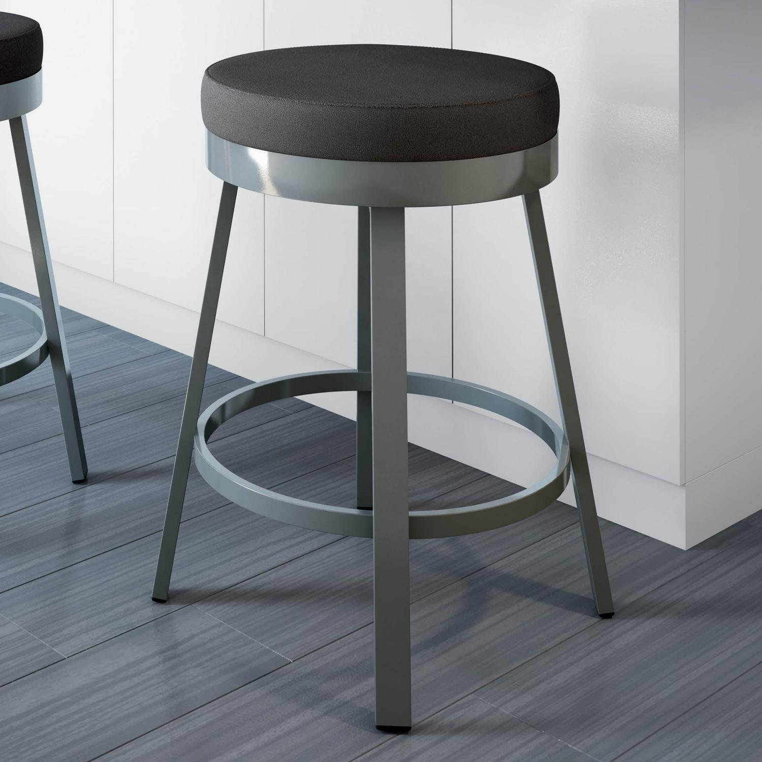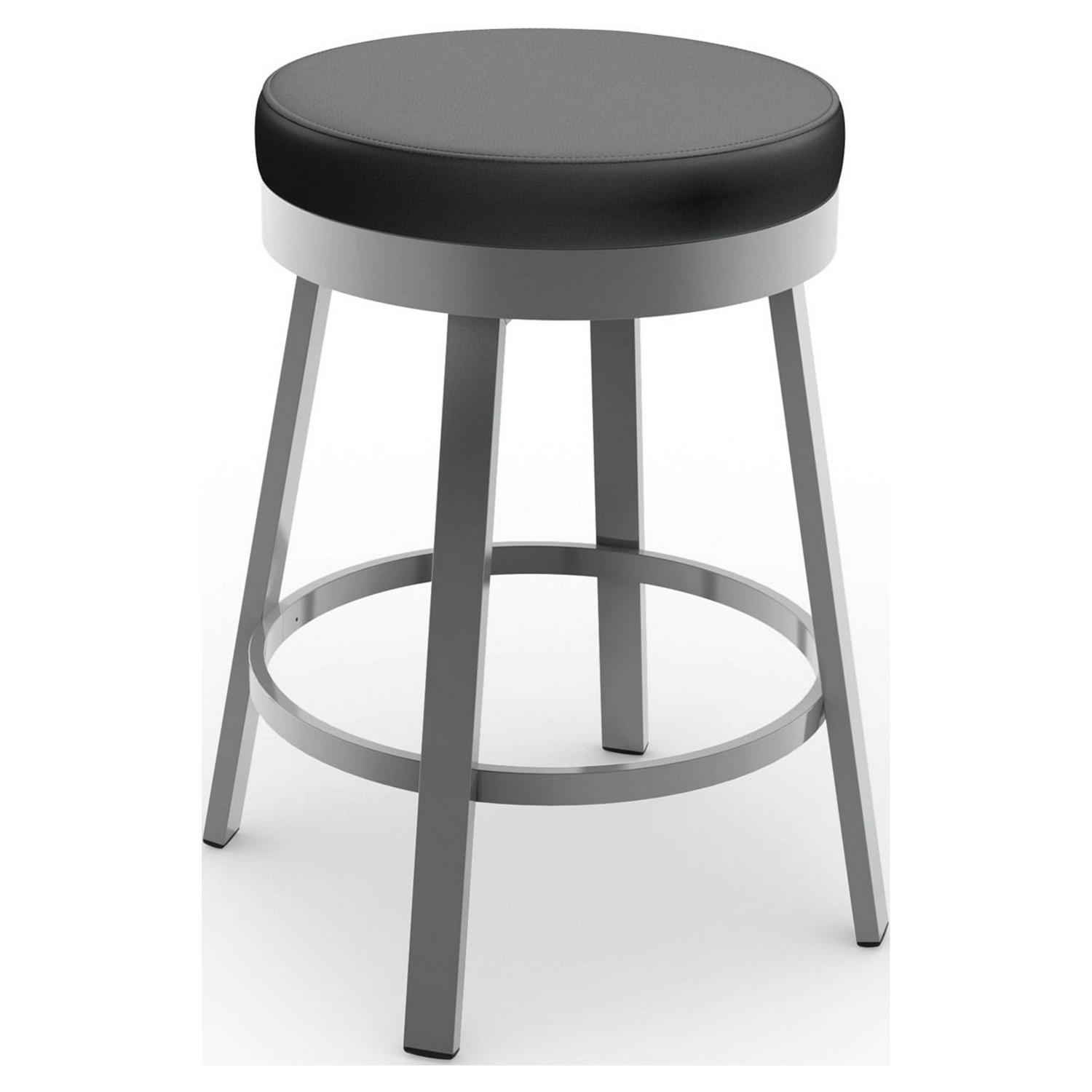 Amisco Clock 26 In. Swivel Counter Stool – Black Faux Leather / Metallic Grey Metal