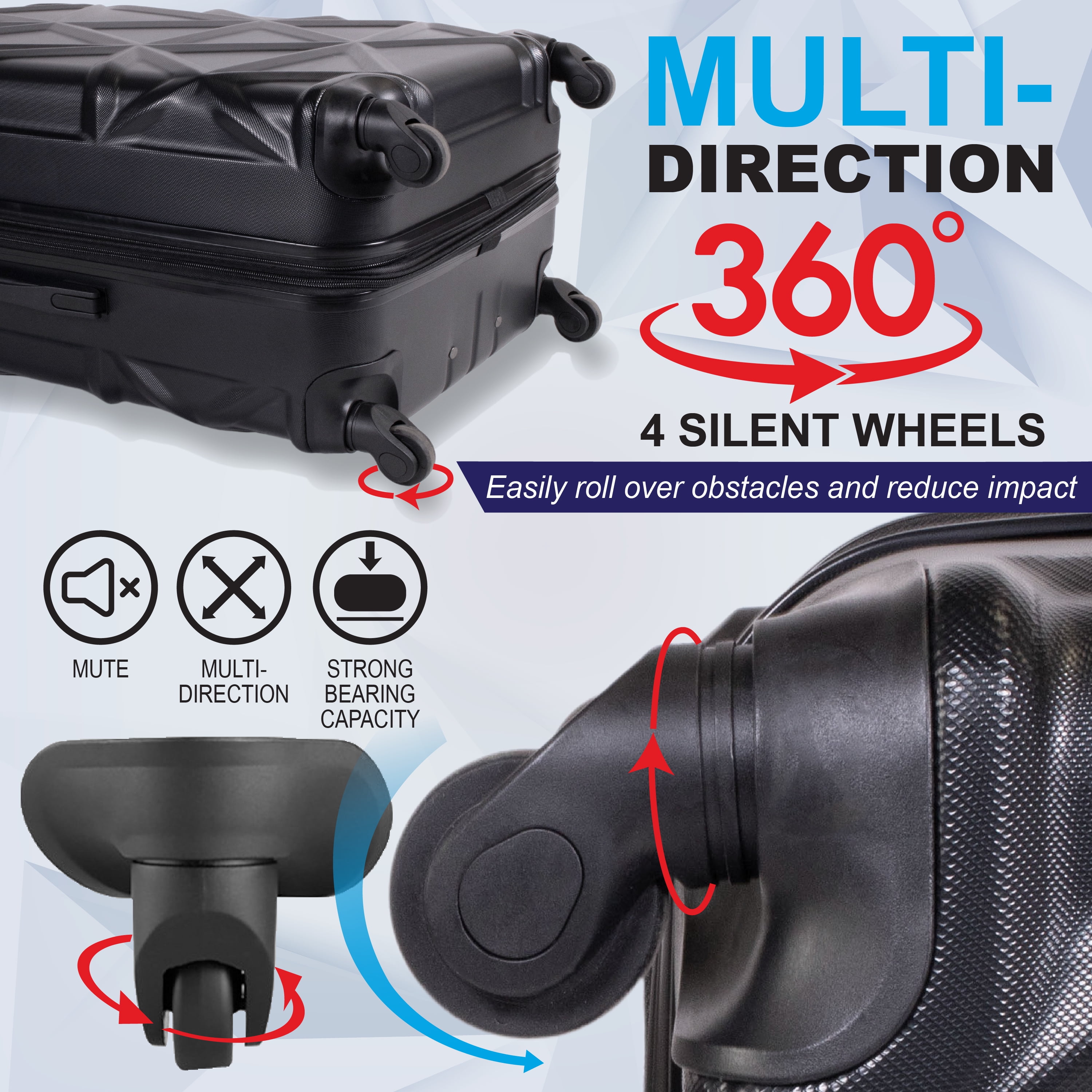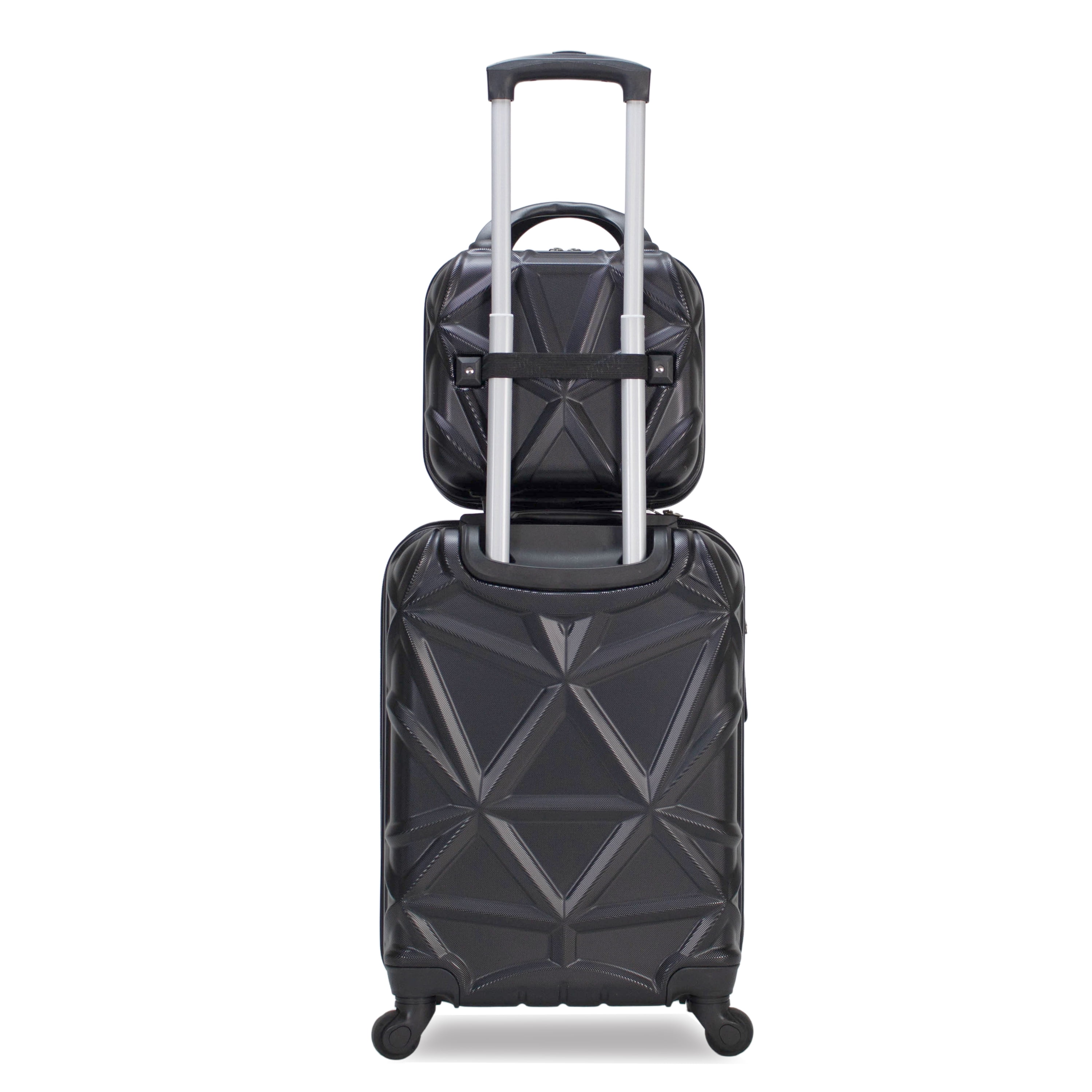 AMKA – Gem Hardside Carry On and Weekender Luggage Set, Hard Sided Luggage with Spinner Wheels, 2-Pieces, Suitcase and Toiletry Bag, (20-Inch and 12-Inch) Black