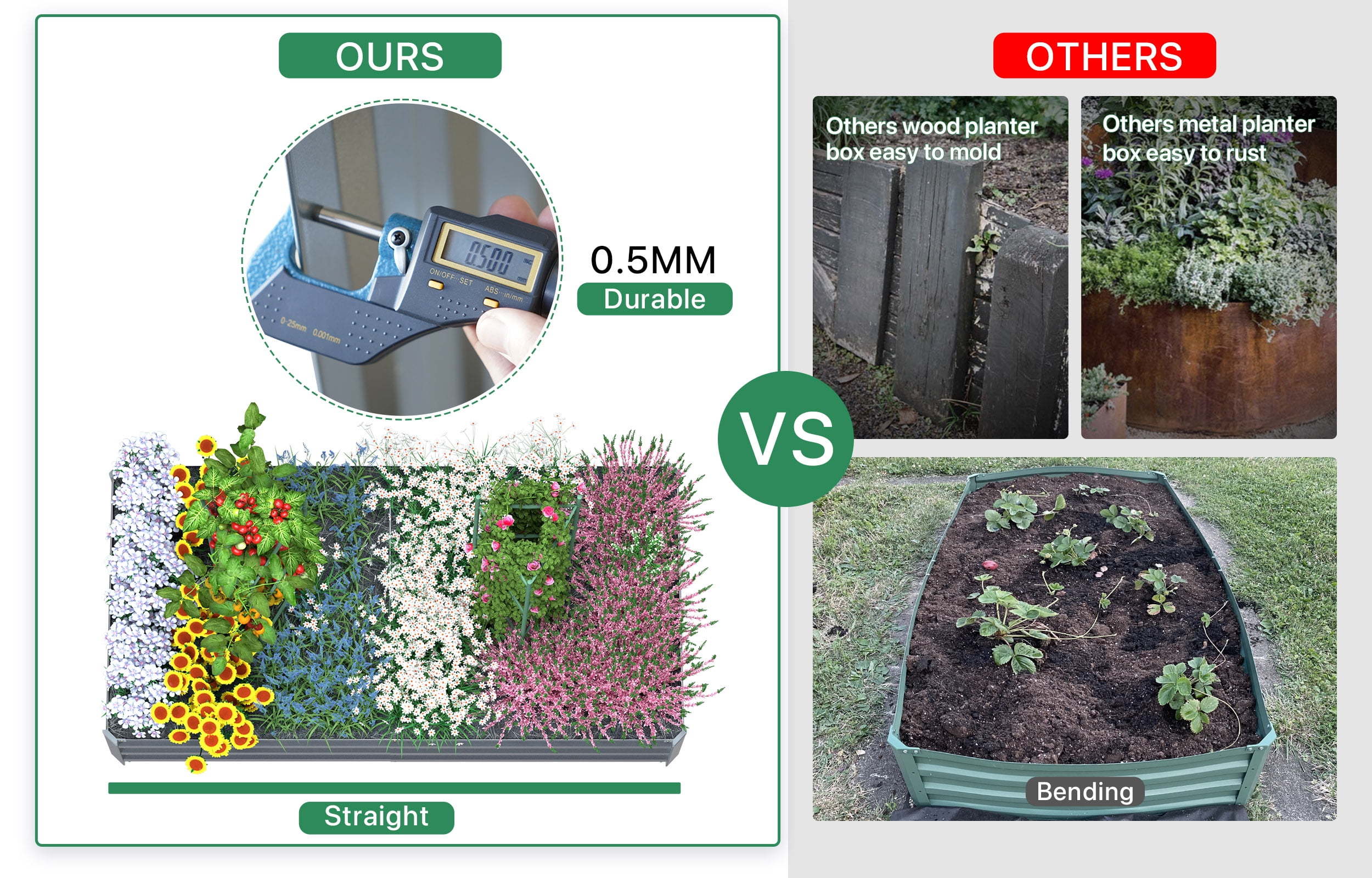 【Spacious Planting Area】: This raised garden bed provides a generous planting area that measures 72″L x 36″W x 12″H, giving you plenty of space to grow a variety of plants. Whether you’re looking to grow vegetables, herbs, flowers, or other plants, this garden bed has ample room to accommodate your needs. 【Durable and Rust-Resistant Material】: Made of high-quality galvanized steel, this garden bed is built to last. The steel is coated with a rust-resistant finish, which helps to protect it from the elements and ensures that it will remain in good condition for years to come. 【Safety & Stabilizing】: Galvanized steel garden bed has eco-friendly coating do not contaminate soil, so you can grow food safely and with confidence. The inner steel stabilizing upport bars help the metal panels retain their shape, preventing warping and soil leakage over time. 【Versatile Design】: This garden bed is perfect for use in a variety of settings, including backyards, patios, and balconies. It can be used to grow vegetables, herbs, flowers, and other plants, or it can be used as a decorative element to enhance the look of your outdoor space. 【Easy to Assemble】: To make the assembly process of the reinforced rods easier, we recommend that two people work together. If the bottom reinforced rod is difficult to install, simply turn the planter box over for easier access and then turn it back over once the installation is complete. This will ensure a smooth and hassle-free installation experience.