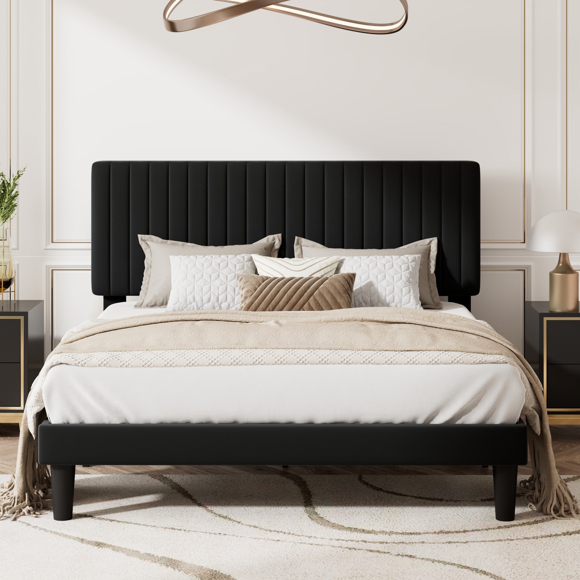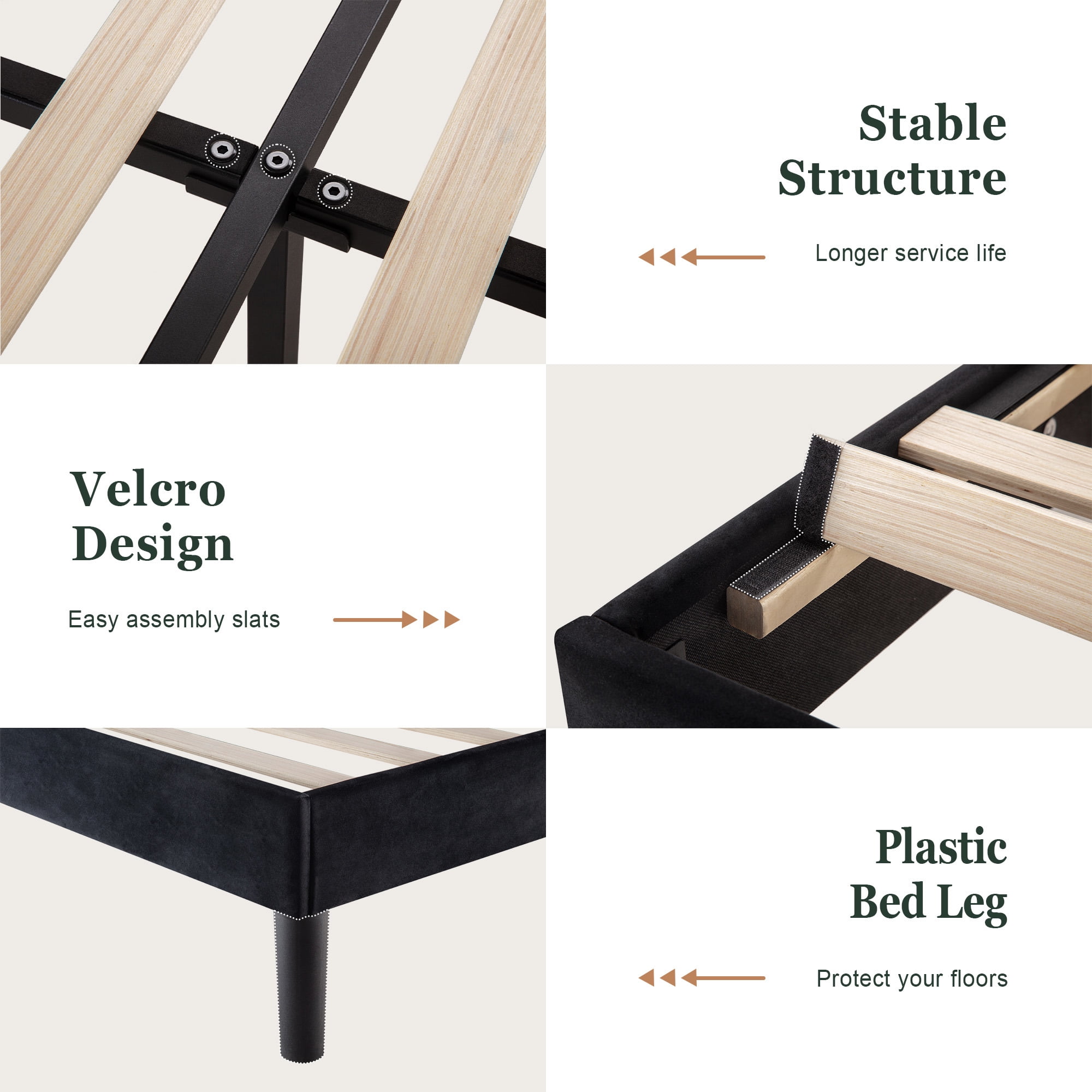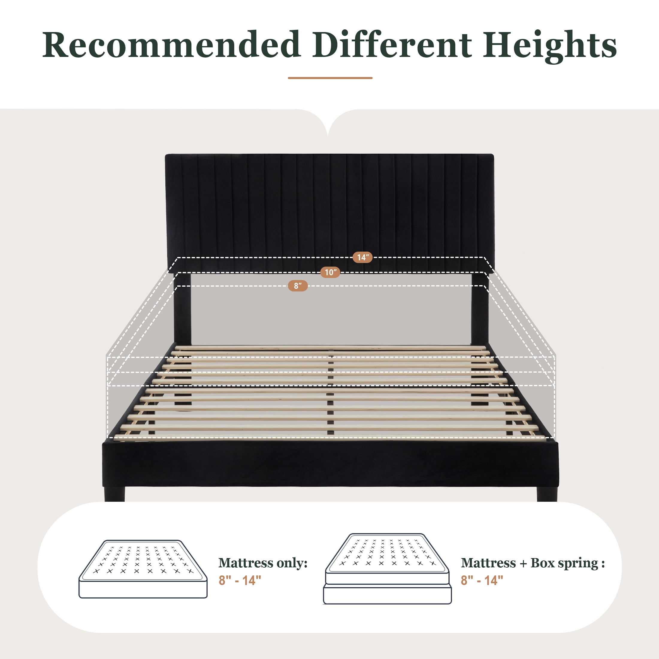 Amolife Queen Size Upholstered Platform Bed Frame with Adjustable Velvet Headboard, Black