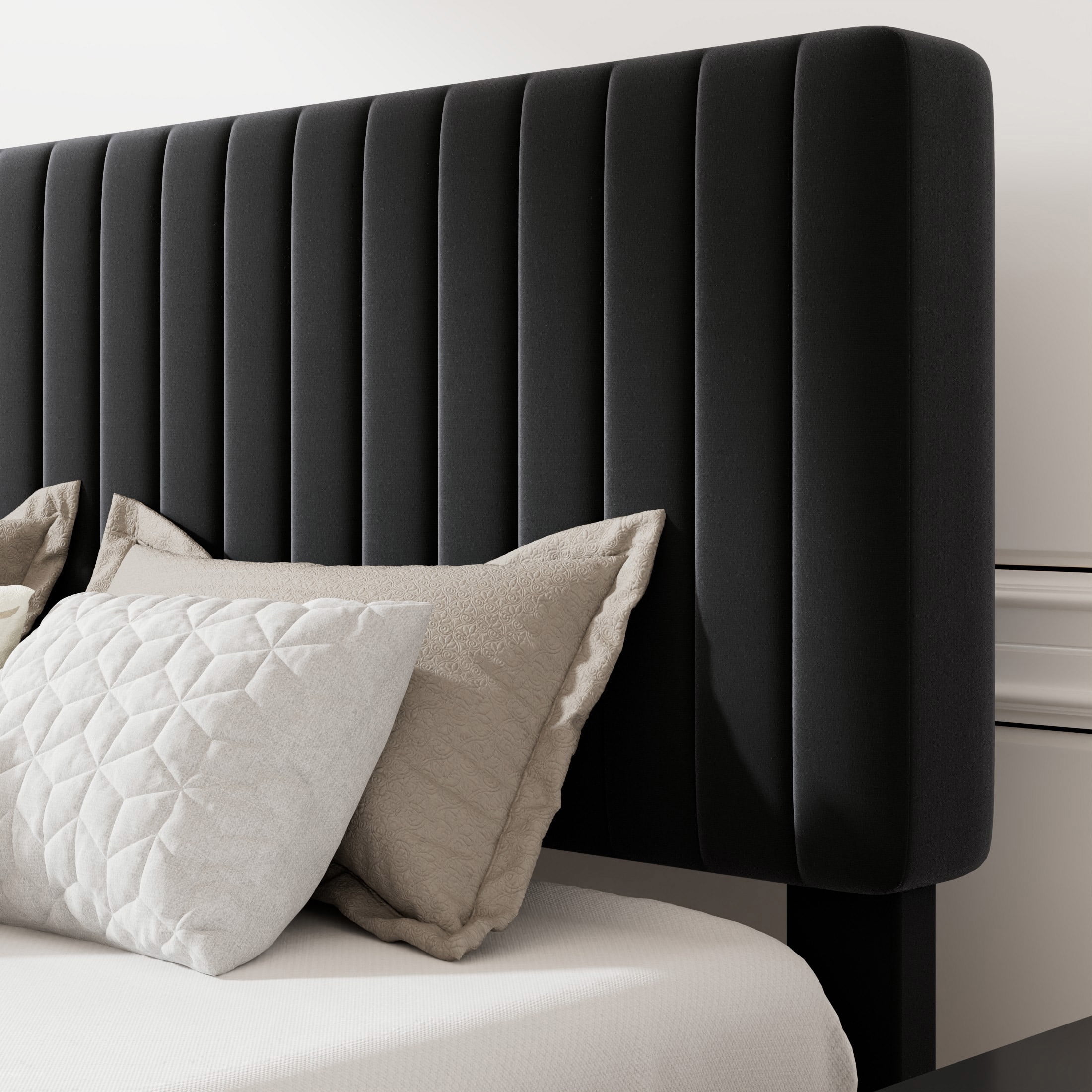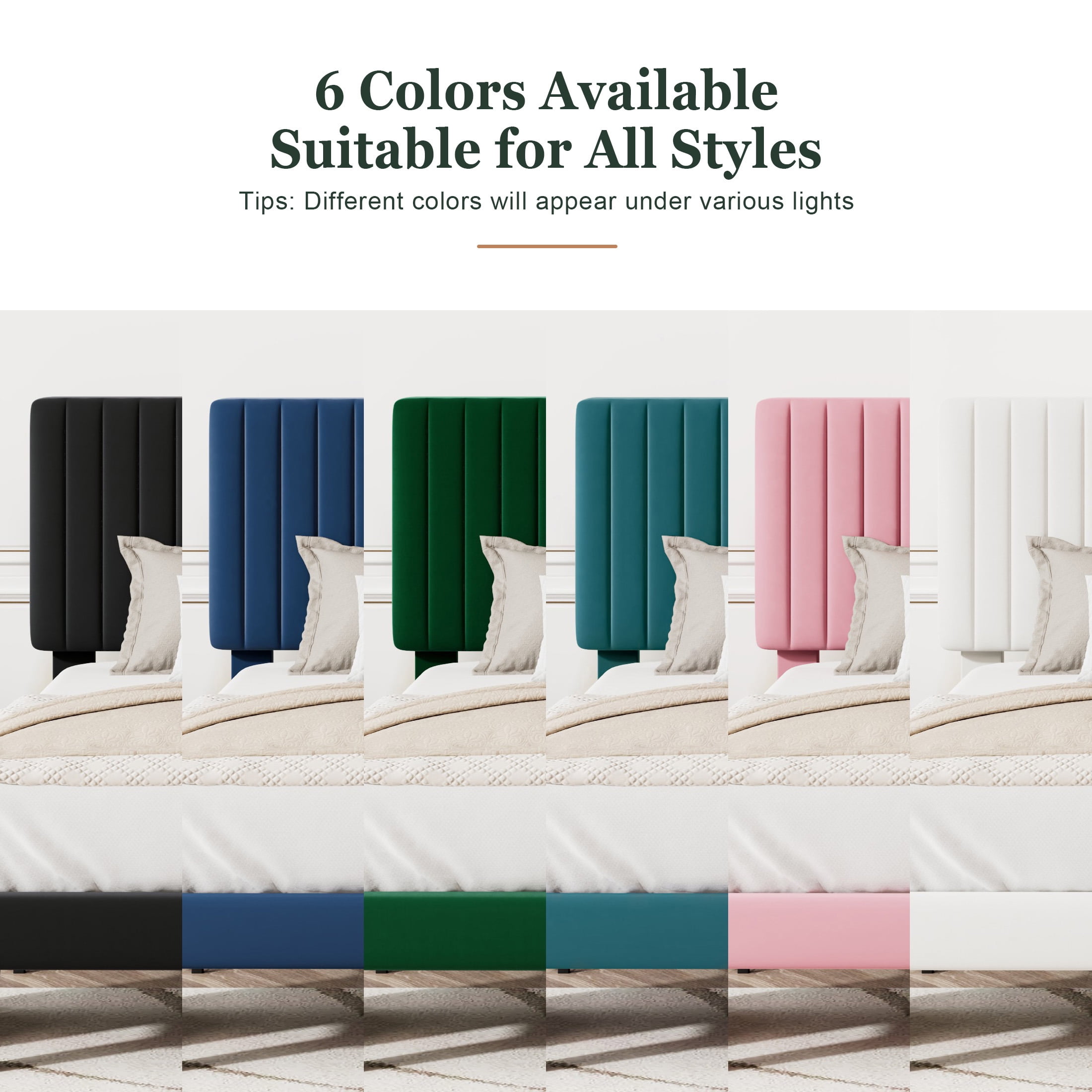 Amolife – Life is All About Enjoying. Vertical channel tufted velvet adjustable headboard adds a touch of luxury to your bedroom decor and becomes a focal point that showcases your impeccable taste. Its height-adjustable feature ensures a personalized sleep experience tailored to your preferences. Designed with a platform bed frame, it offers sturdy support while exuding sophistication. Choose from a range of attractive colors to suit your style and mood, including classic black, stunning pink, vibrant green, serene blue, neutral off white and serene lake blue. With such a diverse color palette, you can easily find the perfect shade to complement your existing bedroom decor.