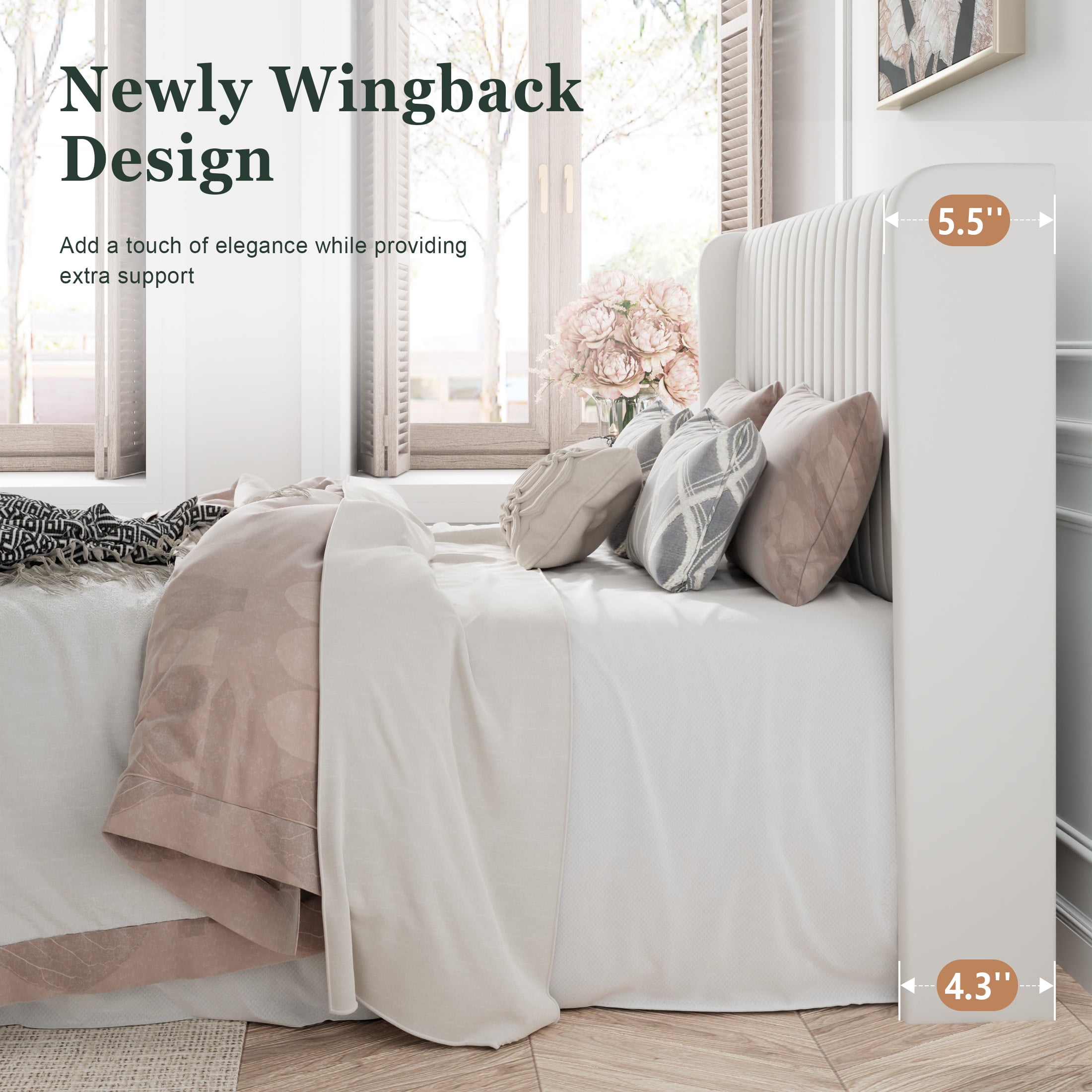 Amolife Queen Size Velvet Upholstered Bed with Wingback Headboard, Off-white
