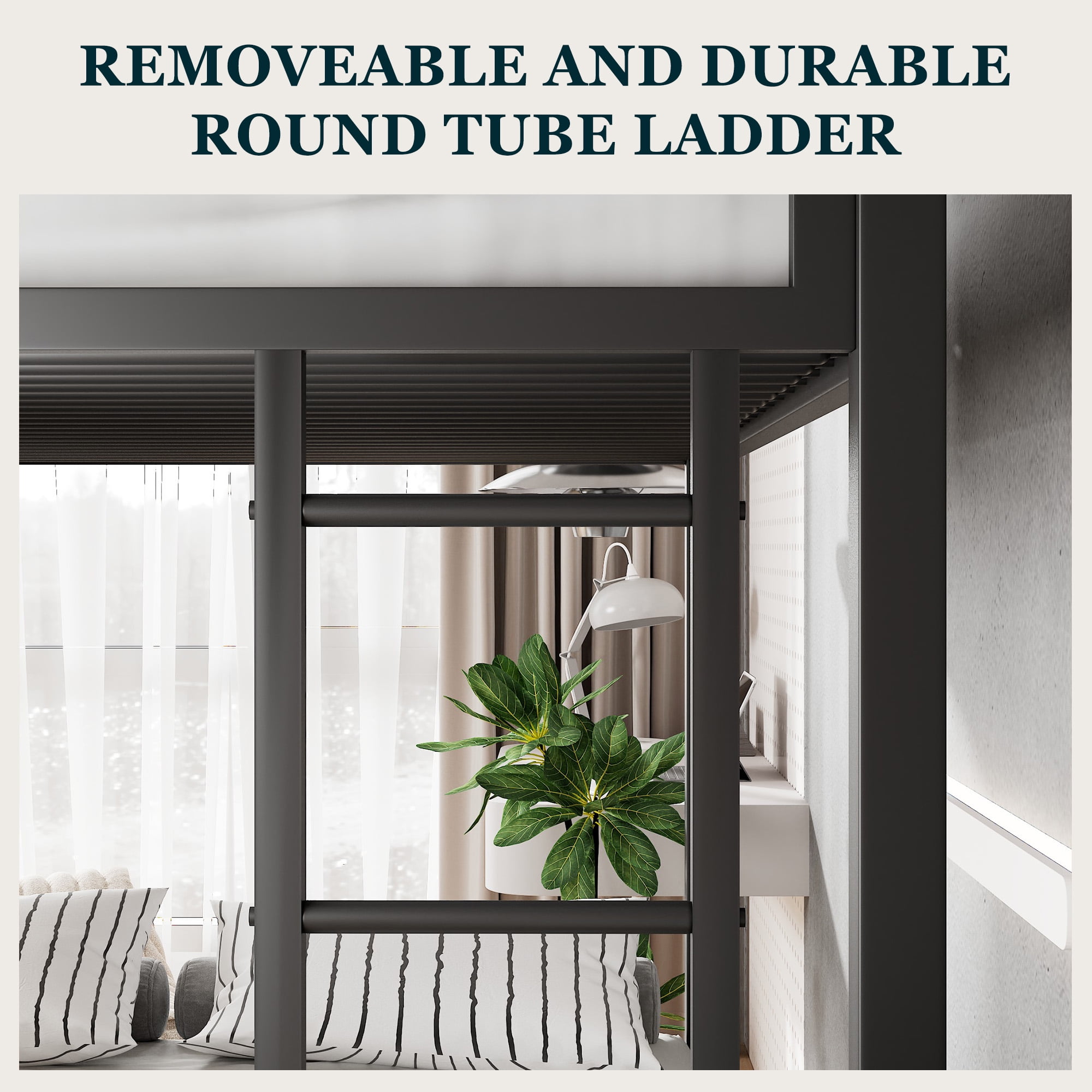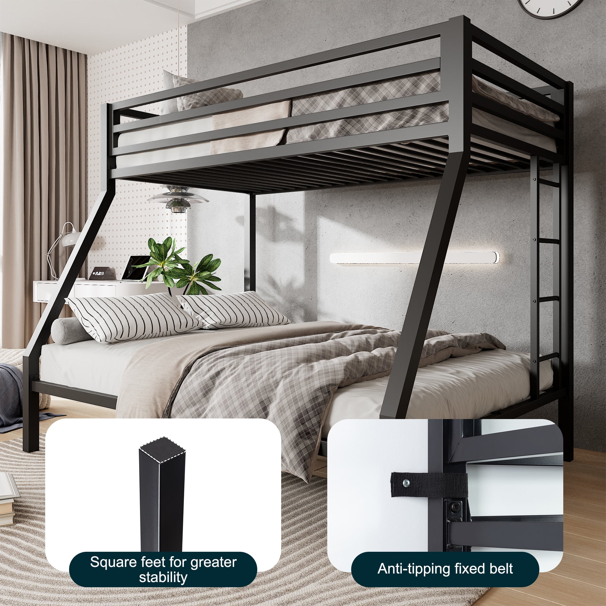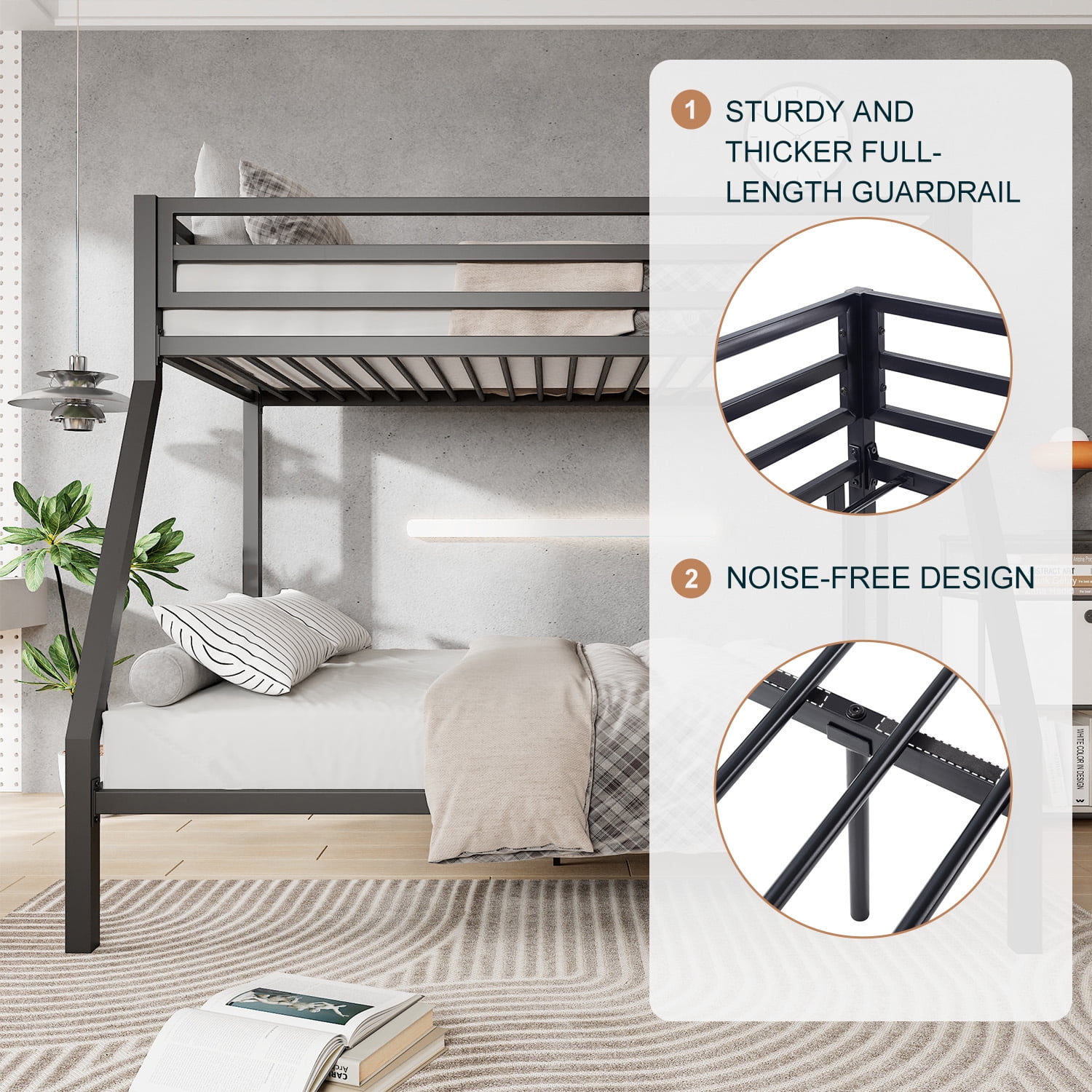 Amolife Twin over Full Size Metal Bunk Bed with Removable Ladder, Full-Length Guardrail, Black