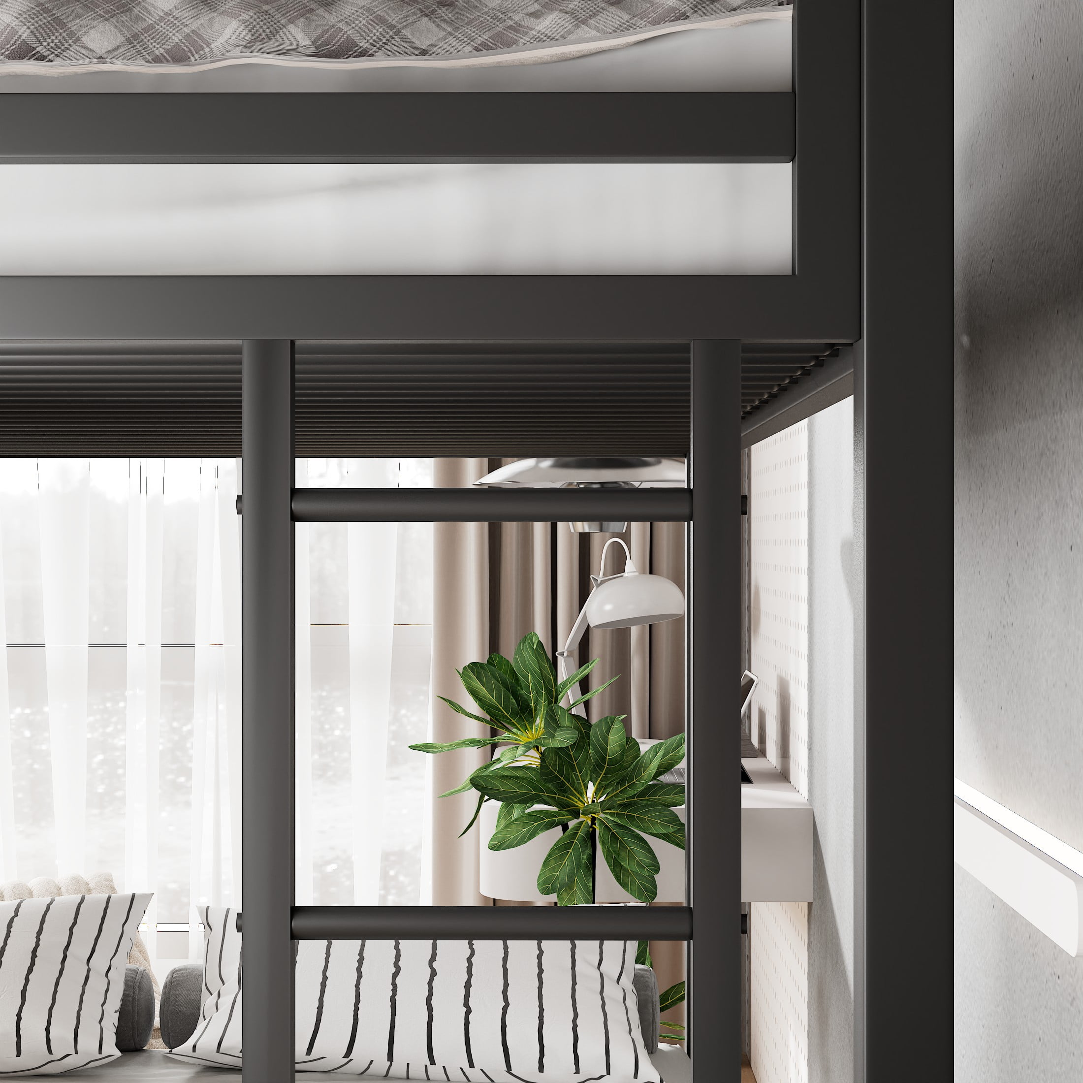Amolife – Life is All About Enjoying. This AMOLIFE Twin over Full Heavy Duty Metal Bunk Bed Frame with Stair can support any mattress without adding box springs by meal slats. It is a bed with large volume storage space. All metal structure makes the whole bed has excellent load-bearing capacity. The ladder could be placed on either side of the bed, which is convenient for your setup. Heavy Duty Frame of ladder provide the safety for your climb. This bed could protect your peaceful sleep. When sleeping on the solid square frame, you can get the ultimate sleep quality. Besides, you can place your desk or shelves just under your bed, which can save more space for other furnitures like sofa, TV stand and so on, rationally organizing your bedroom.