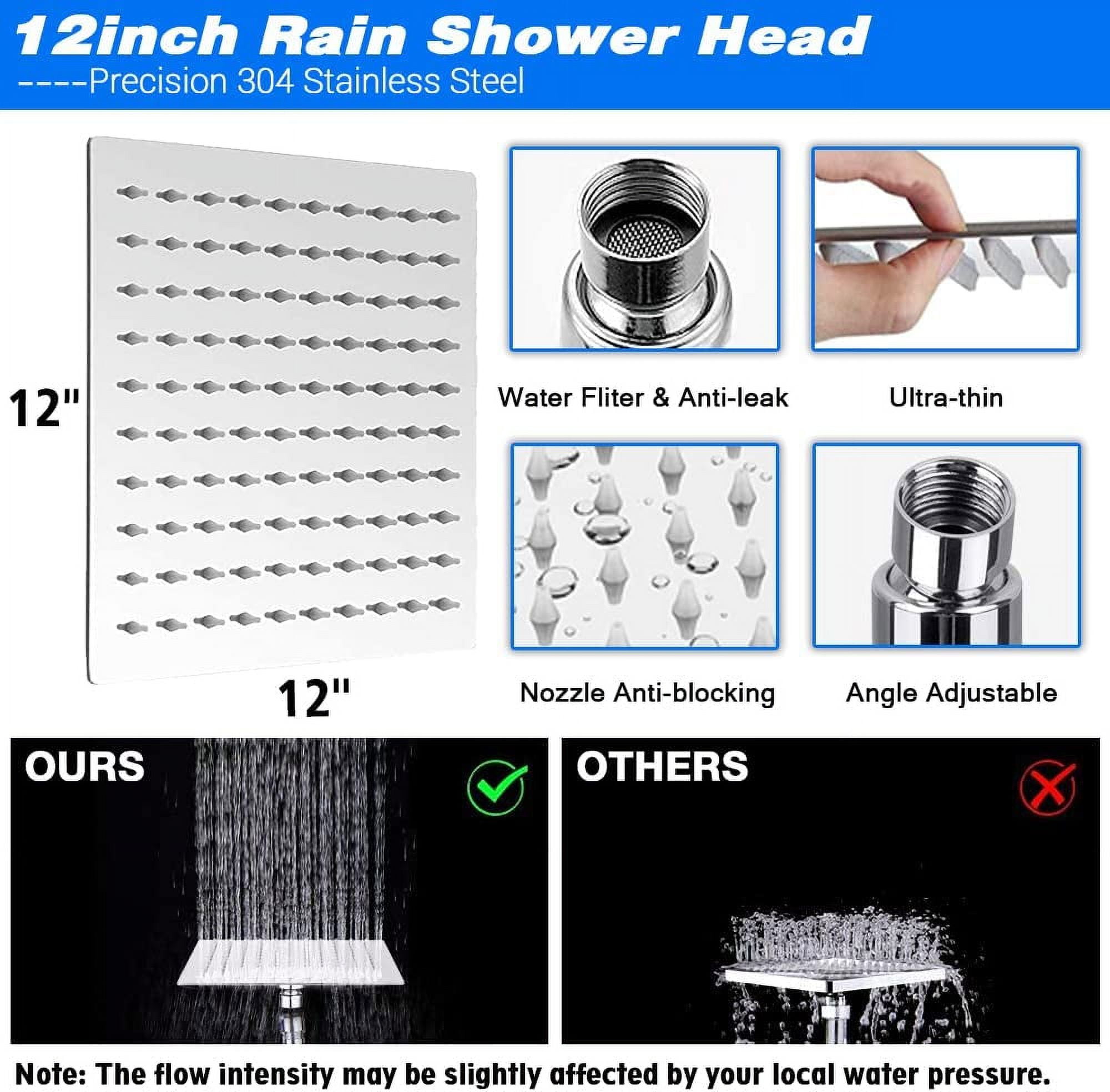 âãShower Head Comboã- If there is any issues with shower head, be free to contact us first so we can help to fix it asap. The combination of 12″ square rain shower head with handheld shower head, 60 inch shower hose and shower head holder allows you to choose different bath experiences at any time, with upgraded shower head extension arm to prevent water leakage. Plus a shower filter purifies your water & reduces harmful Chlorine – universal shower filter with replaceable multi stage filter. âãUpgraded 12″ Shower Head Extension Armã- New upgraded! The shower extension arm is integrated with the 3 way shower diverter to prevent water leakage. Reduce installation steps of shower head combo and make the entire hand shower combination more stable. The shower head arm extension is made of sturdy brass and stainless steel. 180-degree height and angle of the shower head extension arm allows you to adjust the angle and height of the shower heads. âãPremium Rainfall Shower Headã- 12 inch large square rain shower head, waterfall full body coverage. The high pressure shower heads rainfall are made of SUS 304 stainless steel with chrome finish for the highest rust resistance and longevity. Its 196 closely connected silicone nozzles can bring you a hotel-style shower experience, and has a self-cleaning function, which means it will not be blocked. âãHandheld Shower Headã- ABS hand held shower head with Chrome Finish, 5 spray setting showerhead: Power Rain, Power Mist, Rain Mist, Rain Massage, Powerful Massage. Shower heads with 5 spray patterns that make a pressure boosting effect for the ultimate shower experience even at low pressure. Shower head with hose 60 inch, ideal for baby bath, pet shower and cleaning applications. âãEASY TO INSTALLã- This shower head combo is very easy to install, no need to call a plumber, just 4 manually tightened connections can be installed in a few minutes. Each product has passed our tests to prevent its leakage and ensure that they can work normally under any circumstances. Showerheads & handheld showers can be used with a shower head/rainfall shower head alone, or with two showers at the same time. The flow intensity may be slightly affected by your local water pressure.