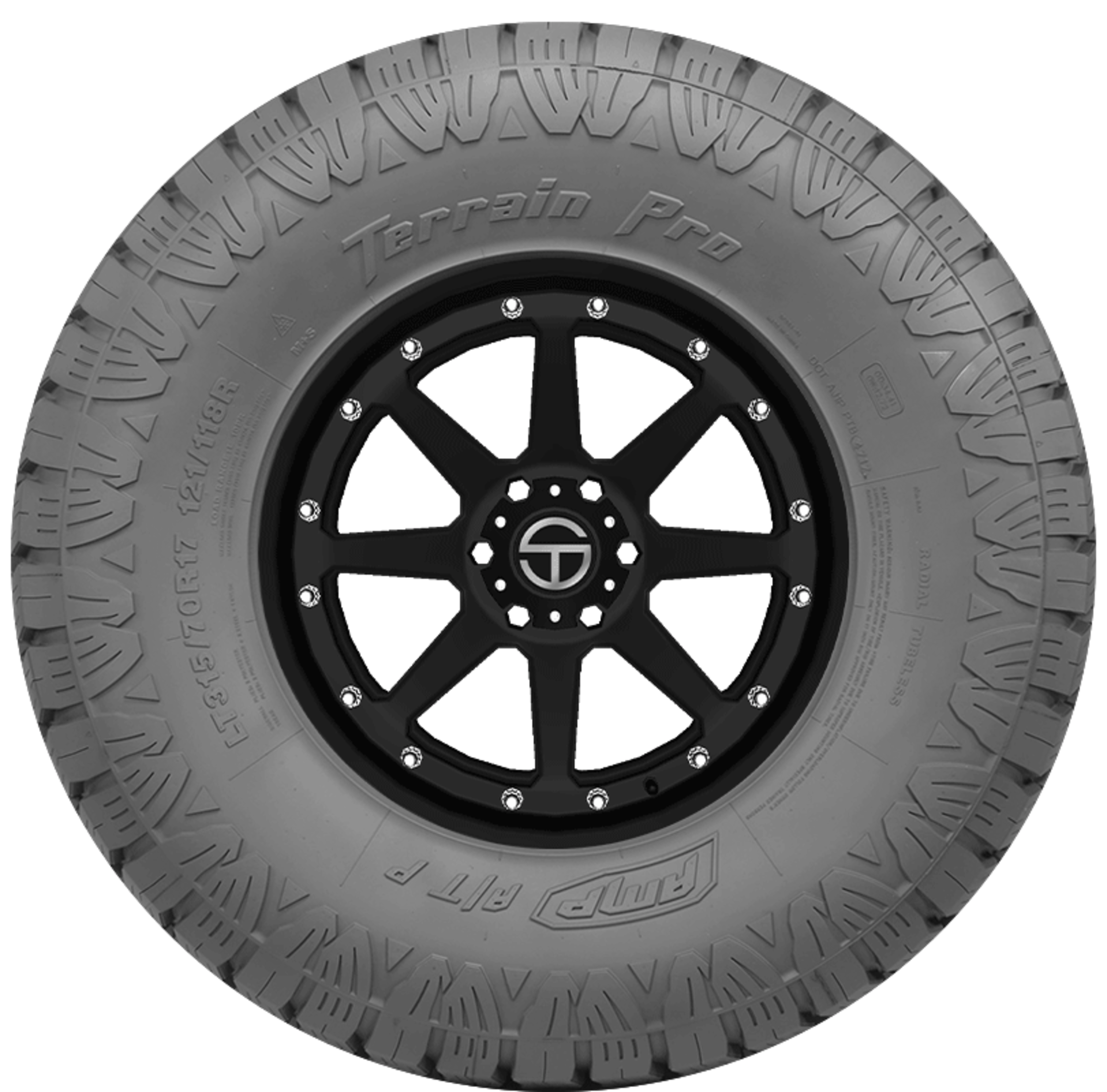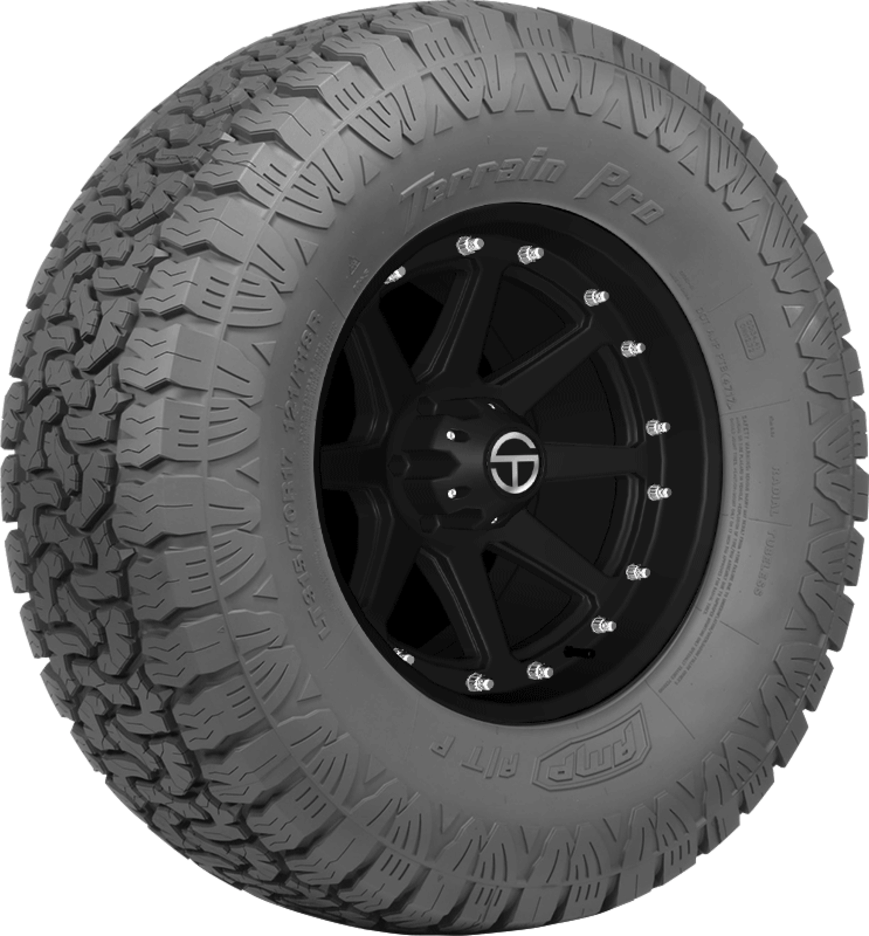 An all-terrain tire, the Terrain Pro A/T P from AMP is designed for use on Jeeps, light trucks, and SUVs, and features deep grooves and a special tread pattern that enhance traction and performance on- and off-road. Backed by a 60,000 mile limited manufacturer tread life warranty, the Terrain Pro A/T P’s twin peak sidewalls and open shoulders work together to force water, mud, and snow out of the tread for consistent traction in any weather condition and on any road.