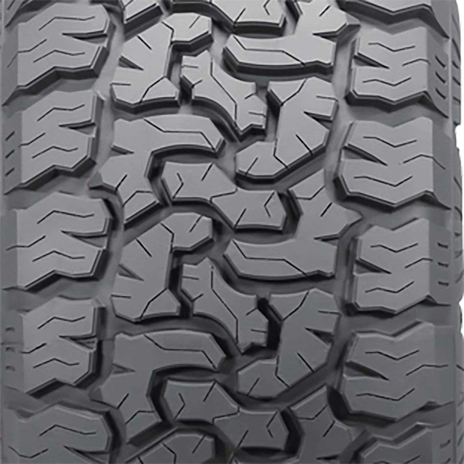 The AMP Terrain Pro A/T tire is a long lasting aggressive all-terrain tire that has an advanced tread compound improving chip and cut resistance. It has a 60,000 mile/ 100,000 km warranty, quiet and comfortable ride for everyday usage. The full depth tread creates a long lasting and even tread wear and is a popular choice for heavy duty commercial applications like pick up trucks used in plumbing and contracting services. The twin lug sidewall on the Terrain Pro A/T tire gives extra durability and grip when used in mud and soft terrains but does not compromise ride comfort on the highway and city streets.