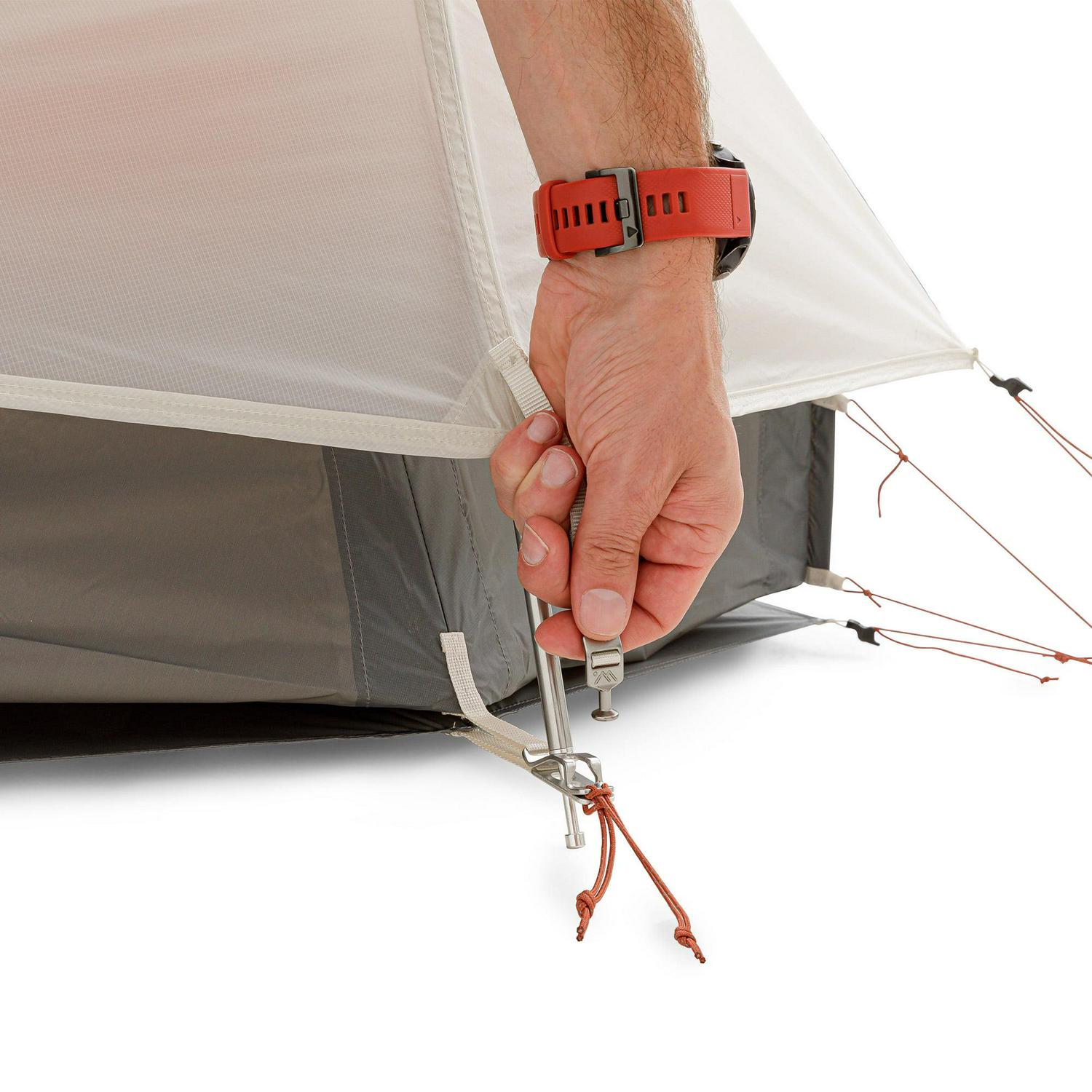 - Rainfly attachment is a breeze with anodized tab and slot hardware