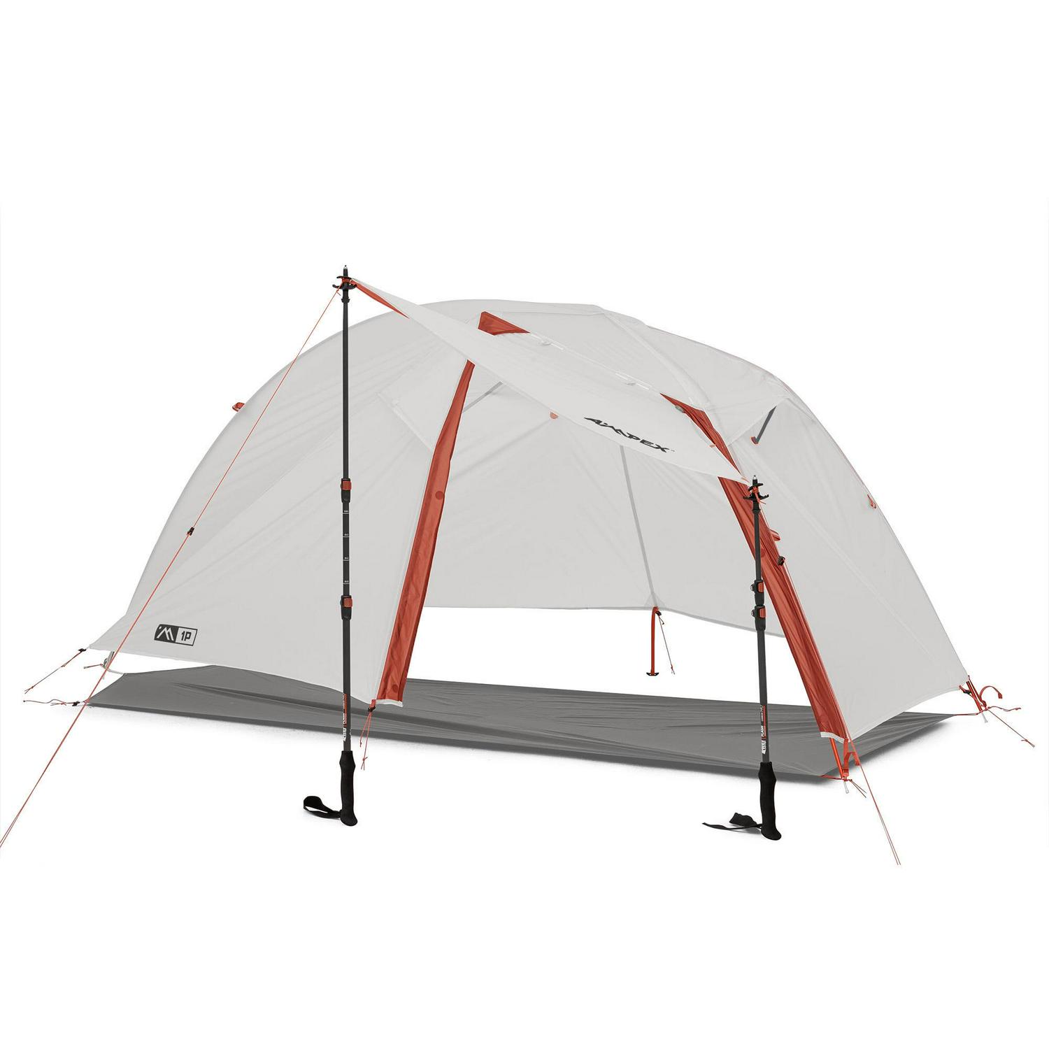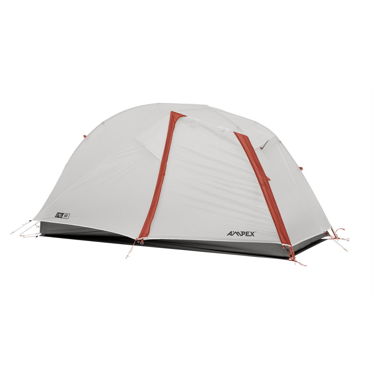 The AMPEX Codazzi 1 Person Backpacking Tent is lightweight and durable for confident excursions on the trail. It is extremely versatile with multiple pitching options that allow for minimum weight or full feature setup, including trekking pole integration (trekking poles not included)! The robust construction and specification includes a footprint to minimize abrasion to the tent floor.