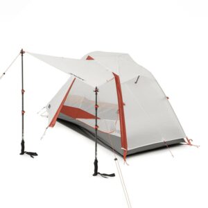 - Trekking Pole Awning turns your rain fly door into a covered “porch” for extra space!