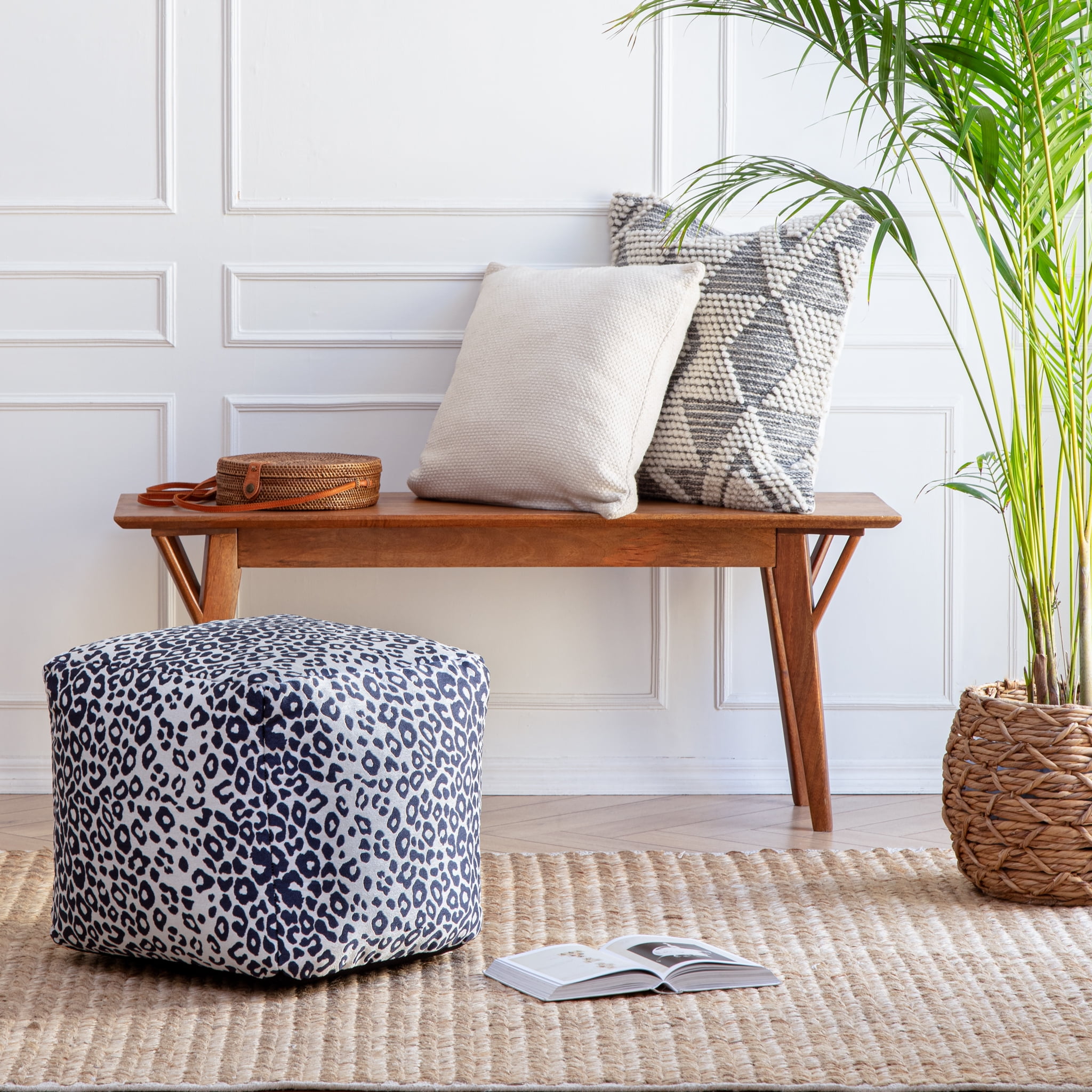 Bring casual, functional seating to either your indoor or outdoor space with this comfortable, versatile pouf. Upholstered in beautifully crafted and durable jacquard-woven polyester that avoid mildew and moisture retention, this pouf transforms a nice space into something better by providing a pop of style and sprinkle of texture. In addition to the handmade high quality, these pieces are filled in the U.S.A with premium, expanded polypropylene beads that provide tremendous durability and a consistent, and soft yet firm seat, perfect for an ottoman or extra seating at any time.
