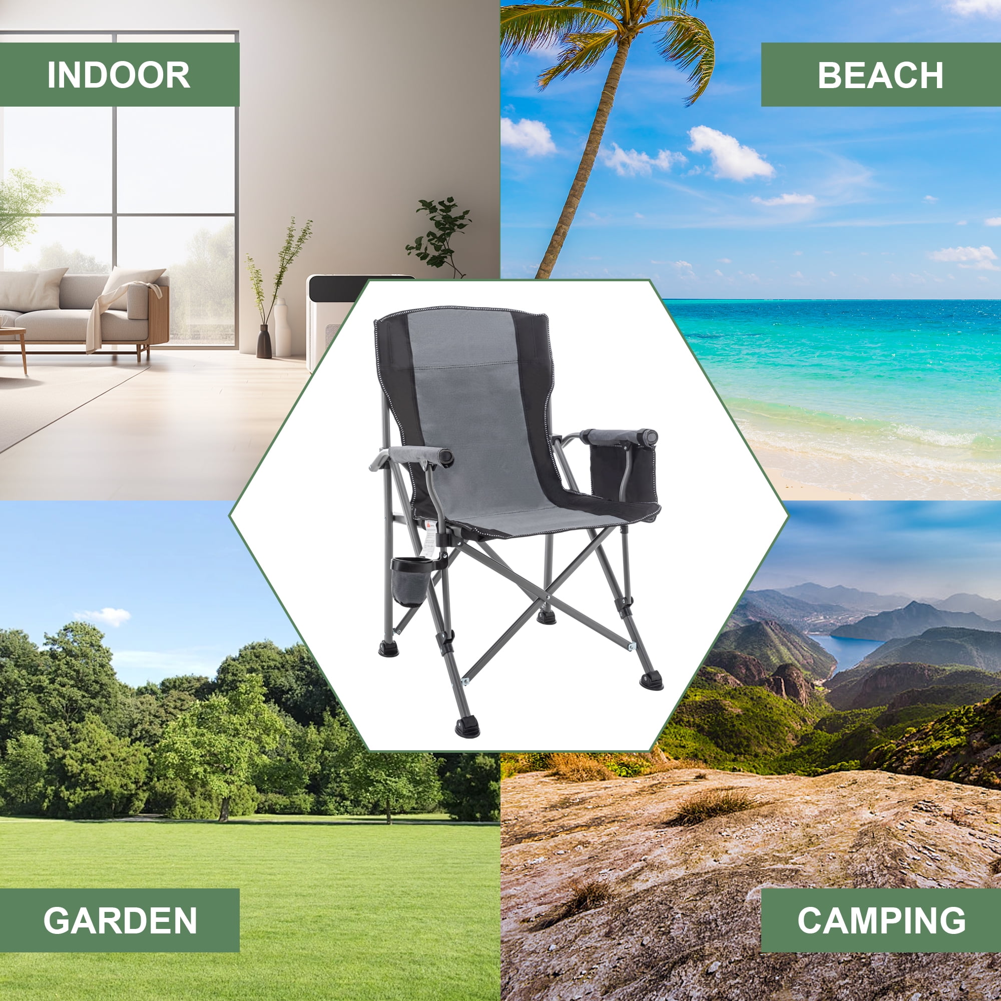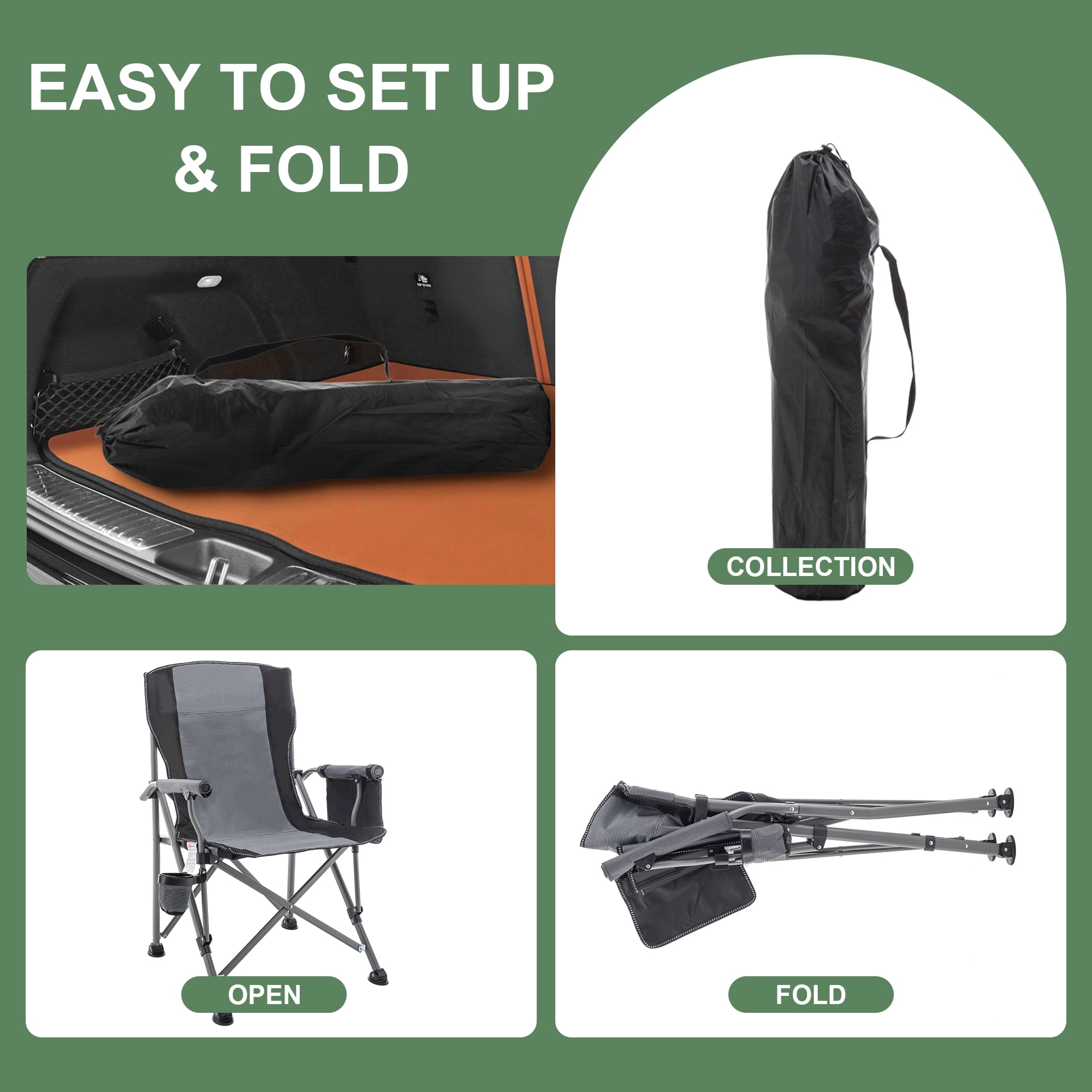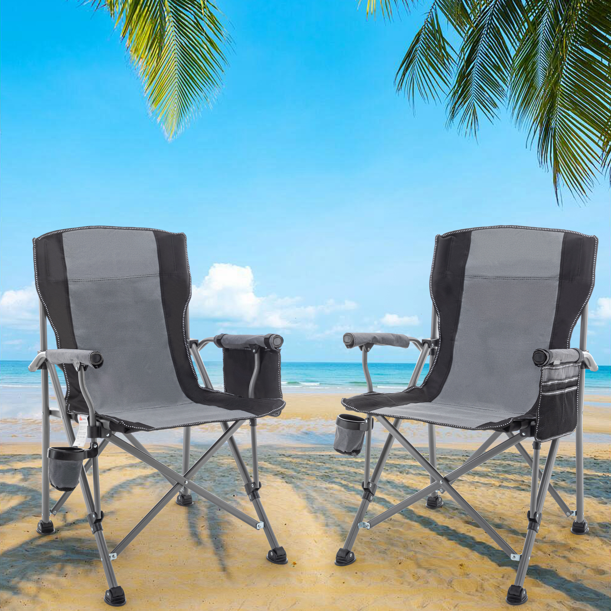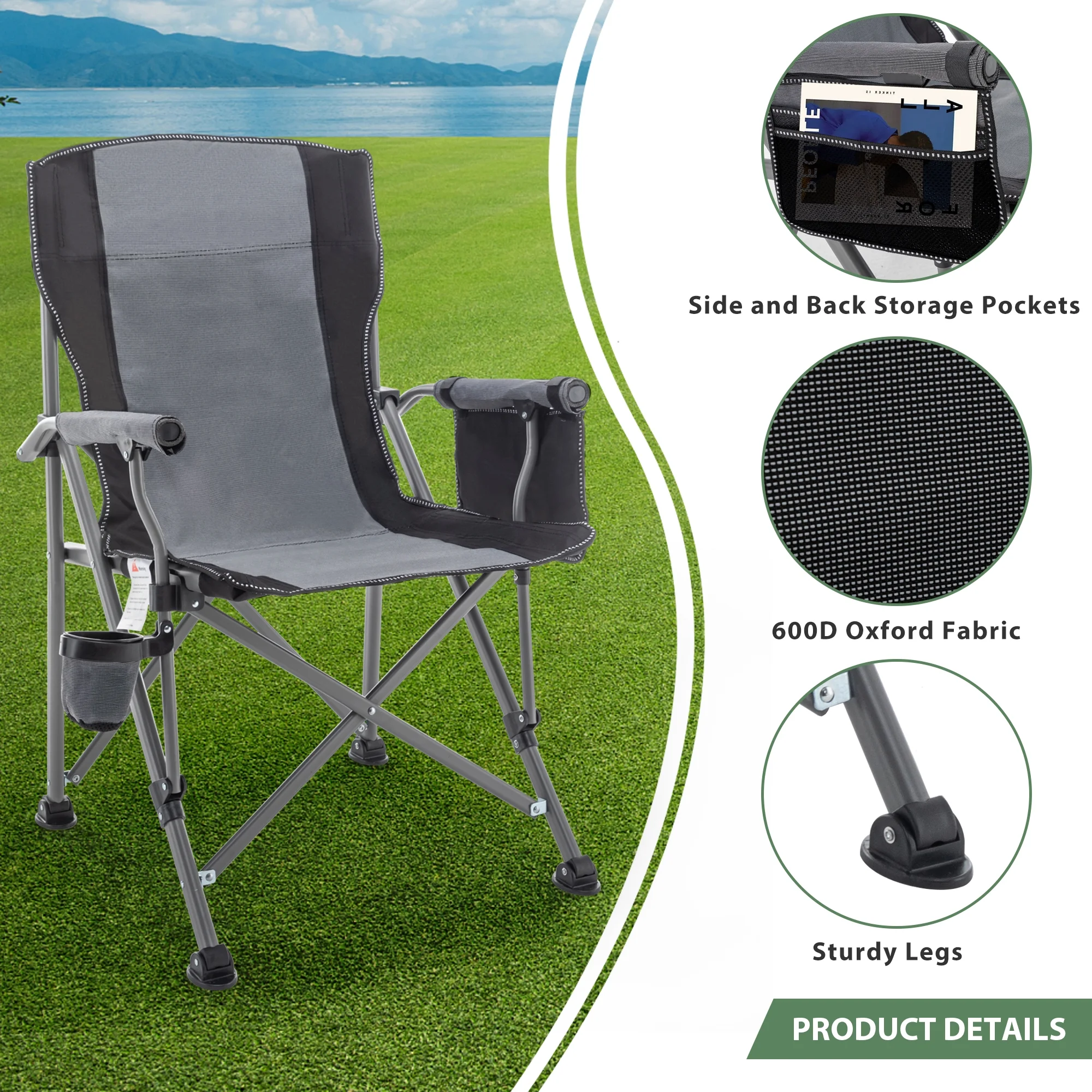 Andeworld Floding Camping Chair Oversized Heavy Duty Outdoor Patio Chair with Cup Holder and Storage Bag for Fishing,Camping(Grey)